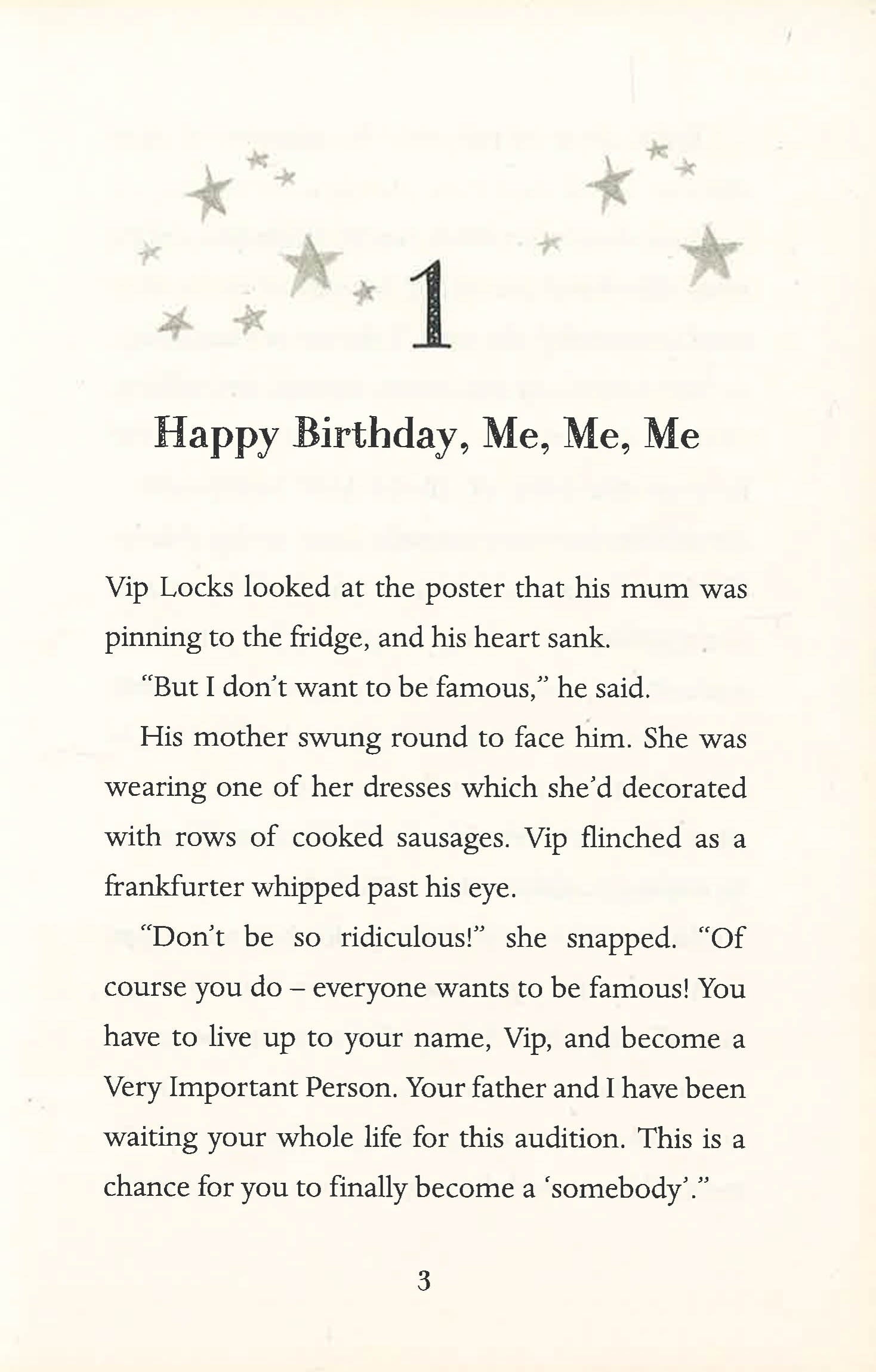 Welcome to Stardust Academy, where fame means everything! But Vip really doesn't want to be famous, and he definitely doesn't want to go to talent school - he doesn't even have any talent. So when he accidentally wins a place at Stardust Academy, he knows he's in for a tough time. Suddenly he's surrounded by showbiz wannabes, led by the school's legendary, mega-famous headmistress, Fenella Stardust. While everybody else is busy worshipping the air Fenella Stardust breathes, Vip suspects there's something more sinister to her than meets the eye...