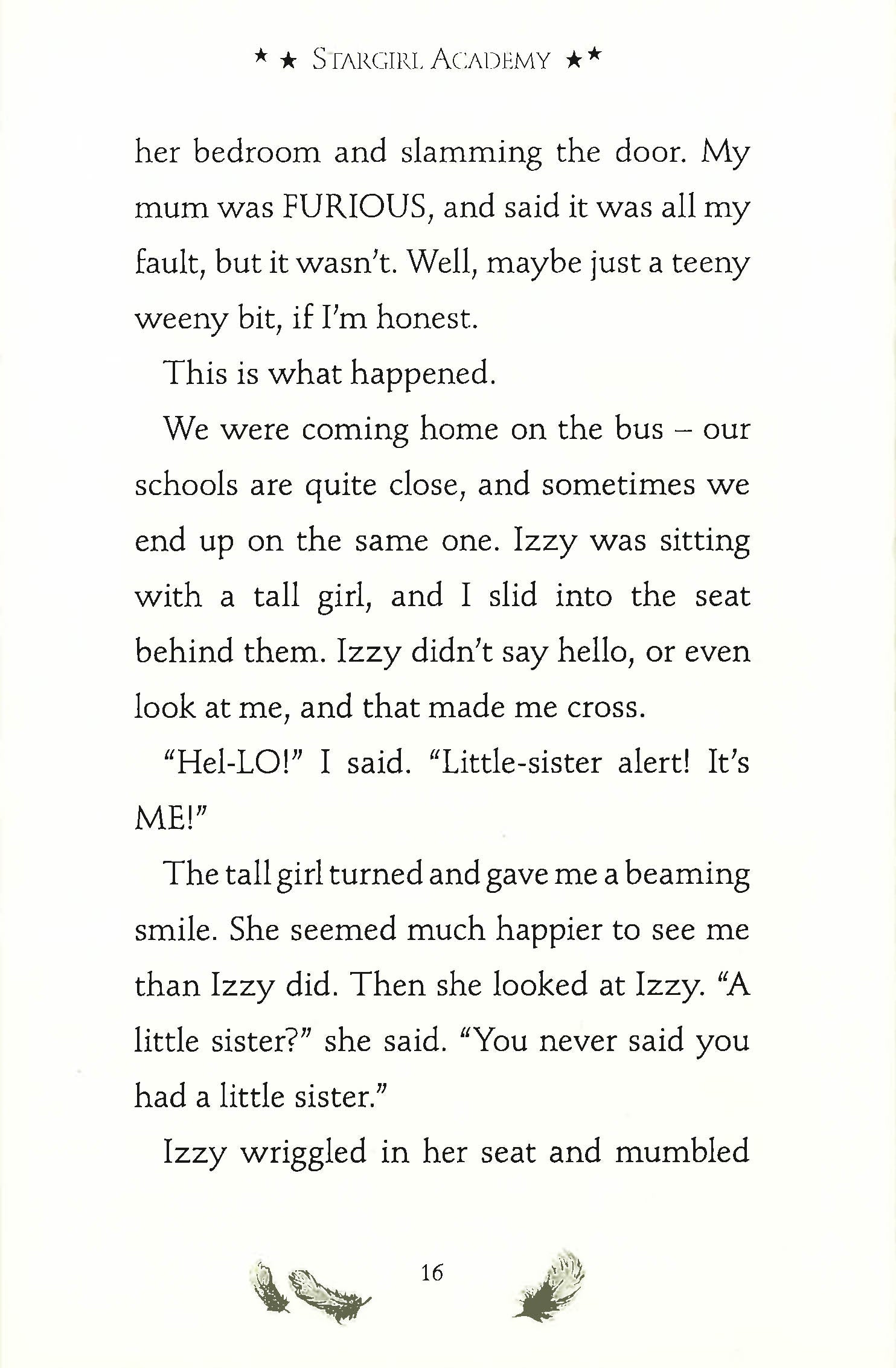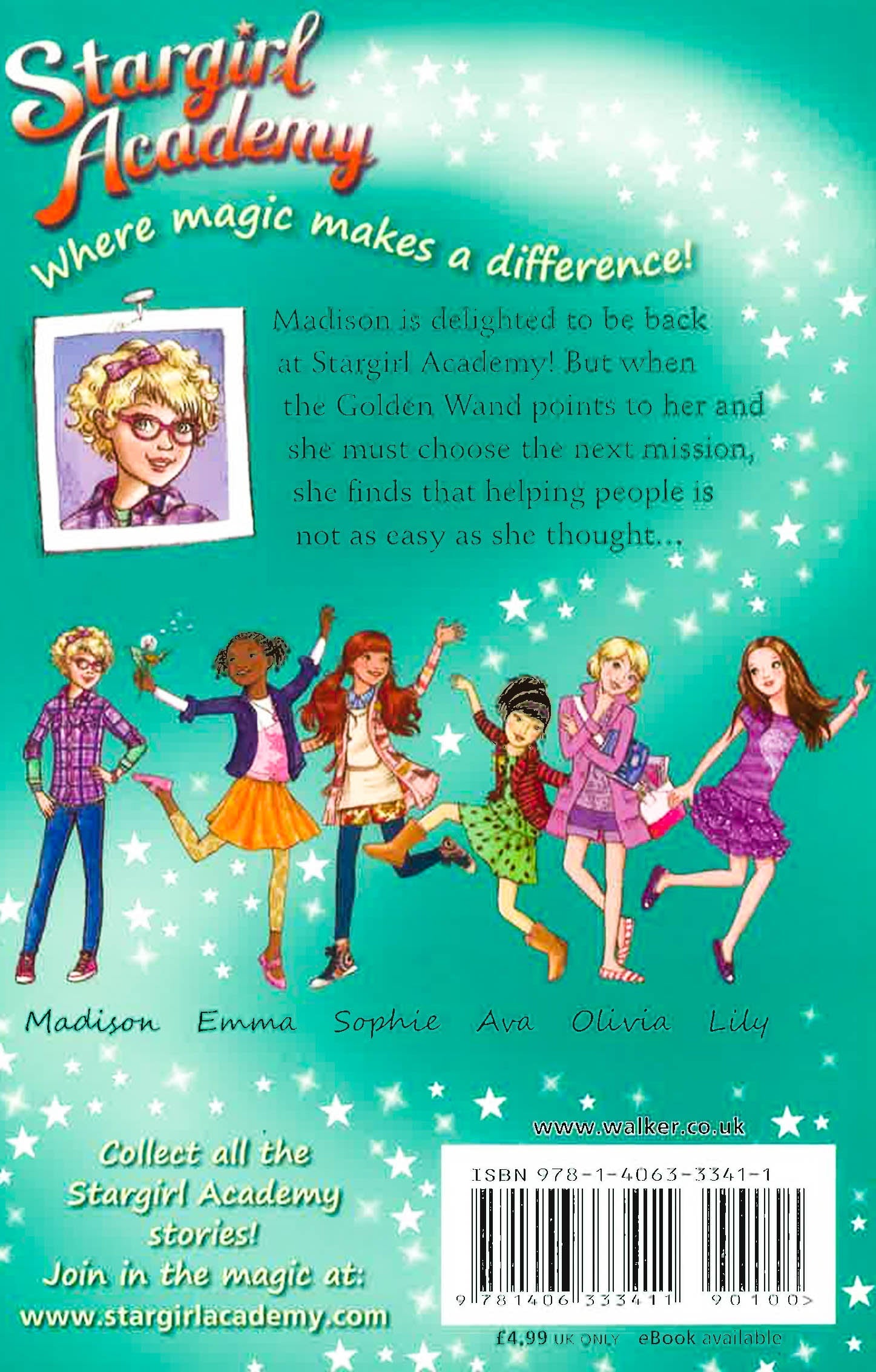 Welcome to Stargirl Academy, the magical school in the clouds! Previously a rather old-fashioned establishment, it has been reopened by its head teacher to train children to be modern day fairy godmothers. Fairy Mary McBee selects a group of girls: Lily, Ava, Madison, Sophie, Emma, Olivia - and Melody and Jackson who think they're better than everyone else. The girls learn lots of spells - shimmering, starry, shining, sparkling, glittering and twinkling ones - which they use to fix problems and help people in trouble. For every successful mission they gain a star, and once they have six stars they will be fully qualified stargirls! Madison leads the second mission and chooses to help her sister Izzy's friend Di who says her mother is very ill. Izzy has been behaving really weirdly since she started her new school and it turns out it's because Di is bullying her. With some magical intervention in the form of a starry spell, the girls discover the truth about Di - and once everything comes out the two girls become firm friends!