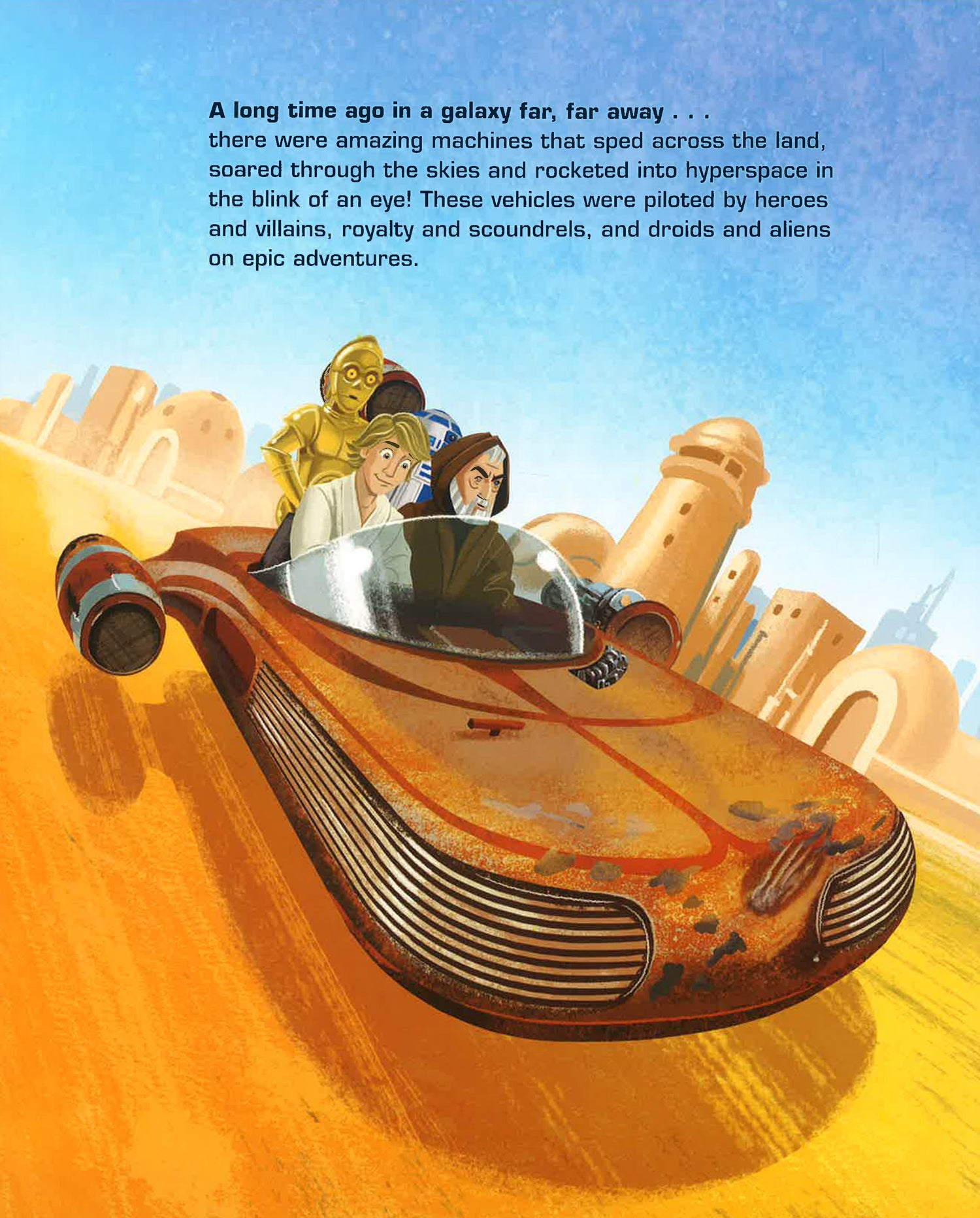 Explore all the amazing vehicles from the Star Wars universe in this Big Golden Book! From A-wings to X-wings, from landspeeders to snowspeeders, from Death Stars to Star Destroyers—this Big Golden Book is packed with stories about all the awesome vehicles from the Star Wars saga! Featuring stunning retro stylized illustrations, this book is perfect for Star Wars—and Big Golden Book—fans of all ages! Star Wars has captivated millions worldwide for almost forty years. The phenomenon began with the 1977 theatrical debut of Star Wars, later retitled A New Hope, and has expanded to include six additional major motion pictures (The Empire Strikes Back, Return of the Jedi, The Phantom Menace, Attack of the Clones, Revenge of the Sith, and The Force Awakens), television programming, publishing, video games, and much more, with new films coming every year. Created by visionary writer/director George Lucas, Star Wars is an epic “space opera” and an ever-deepening, timeless, mythological tale of good versus evil, set in a galaxy far, far away. Filled with noble Jedi Knights, fearsome creatures, and cruel villains, Star Wars introduced “the Force” into the global vocabulary, along with characters such as evil Darth Vader, wise old Yoda, idealistic Luke Skywalker, and lovable Chewbacca. The saga continues to grow and expand, delighting new generations with its exotic worlds, iconic themes, and unforgettable stories.