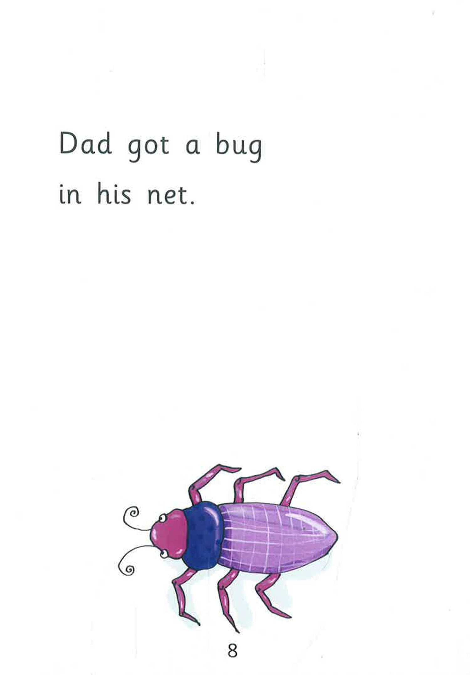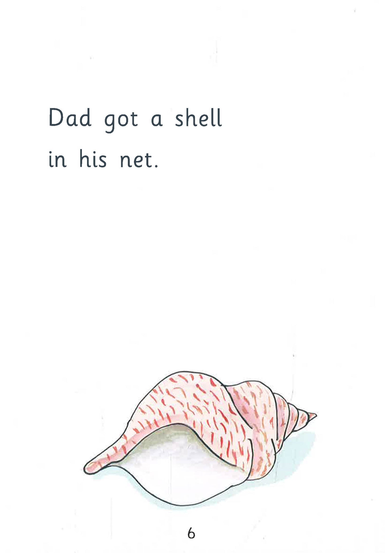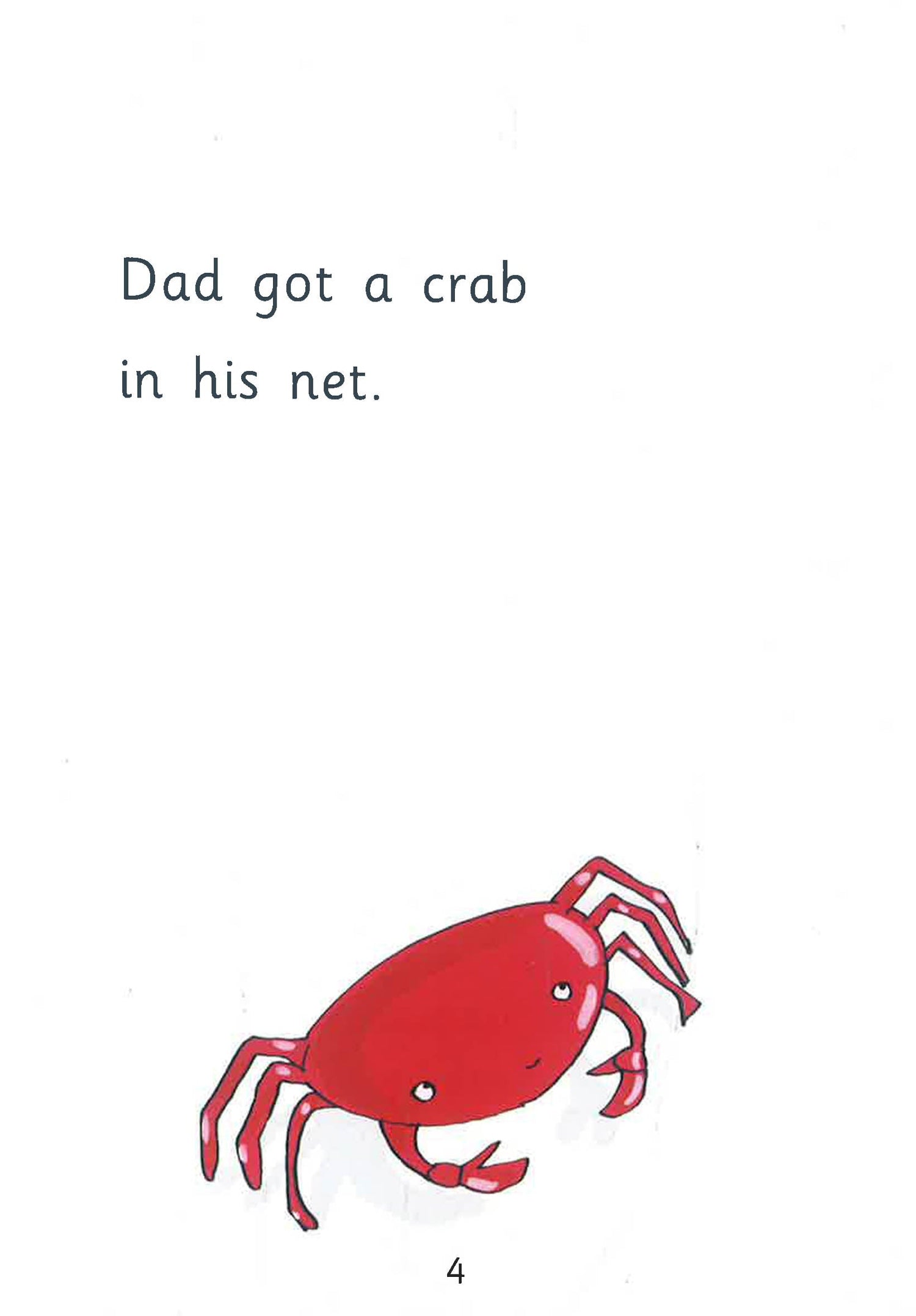 Dad gets lots of things in his net a crab a bug and a stone but no fish at all!