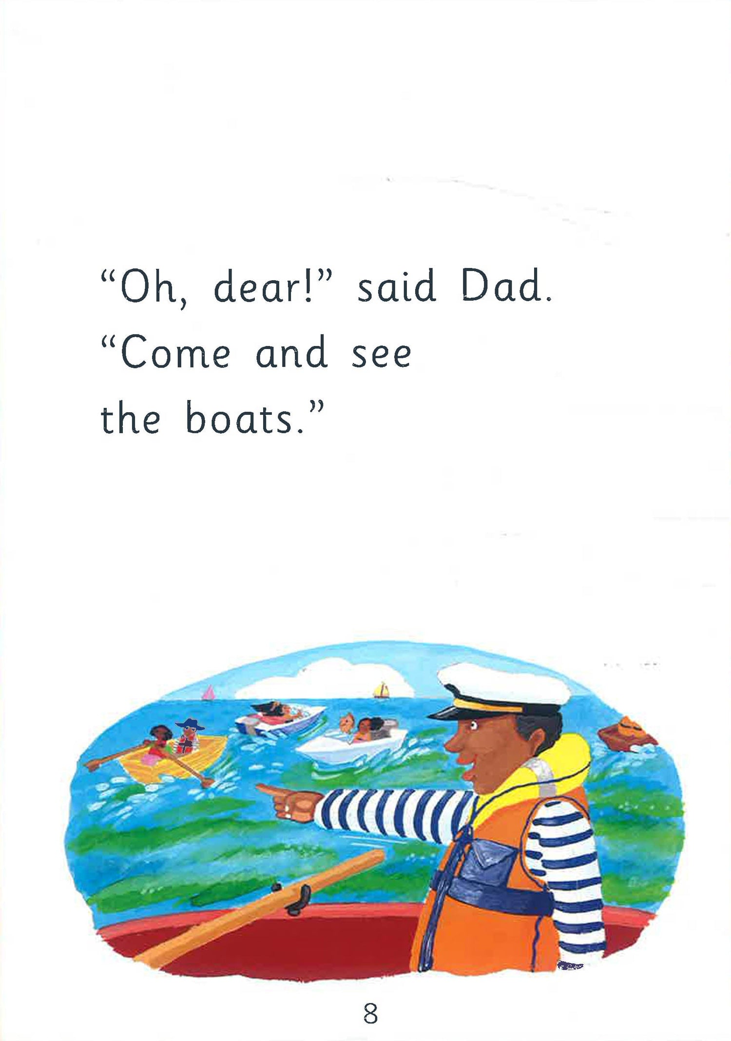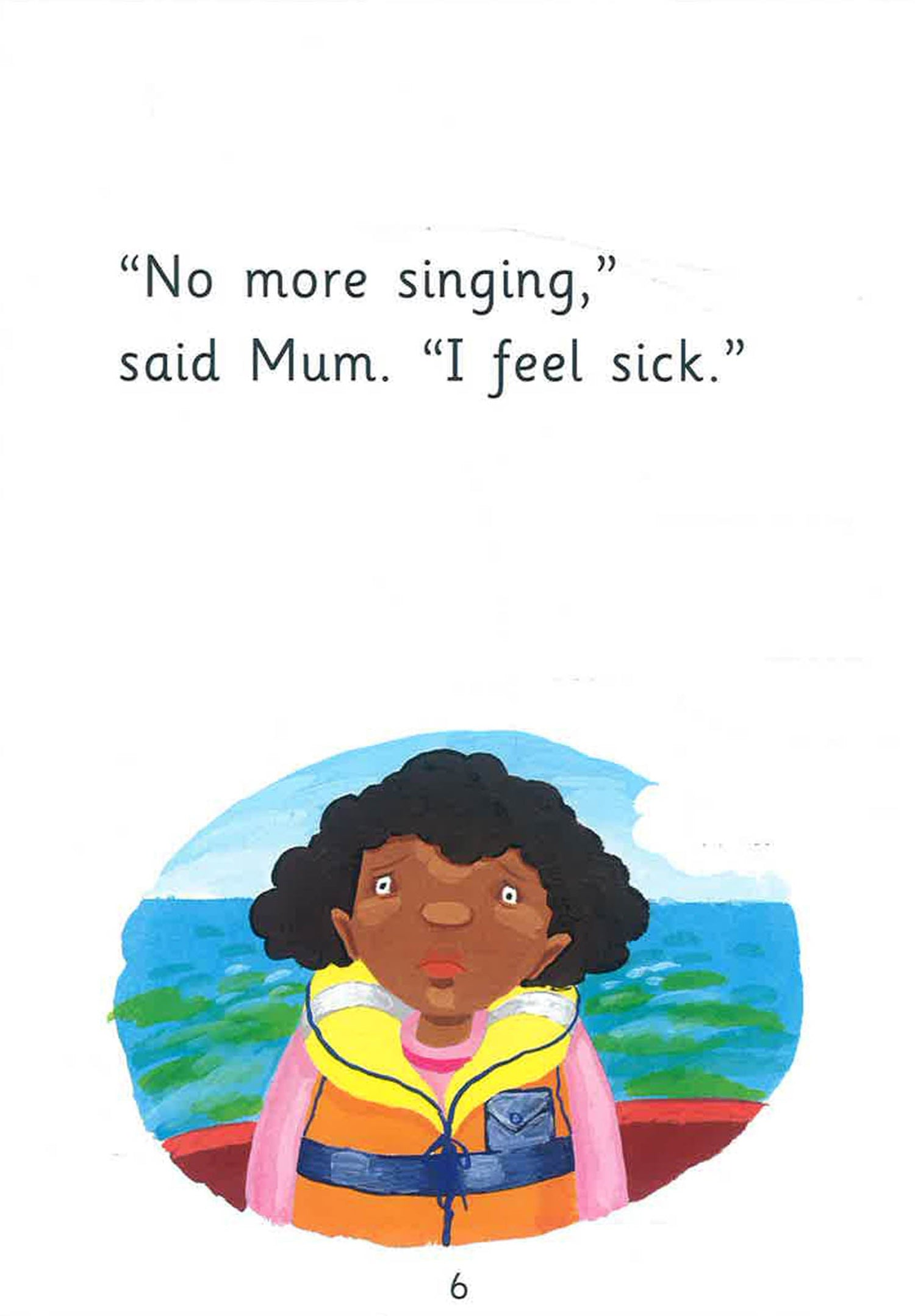 The family are at the seaside, on a boat. but Dad just won't stop singing. How can the family get him to be quiet?