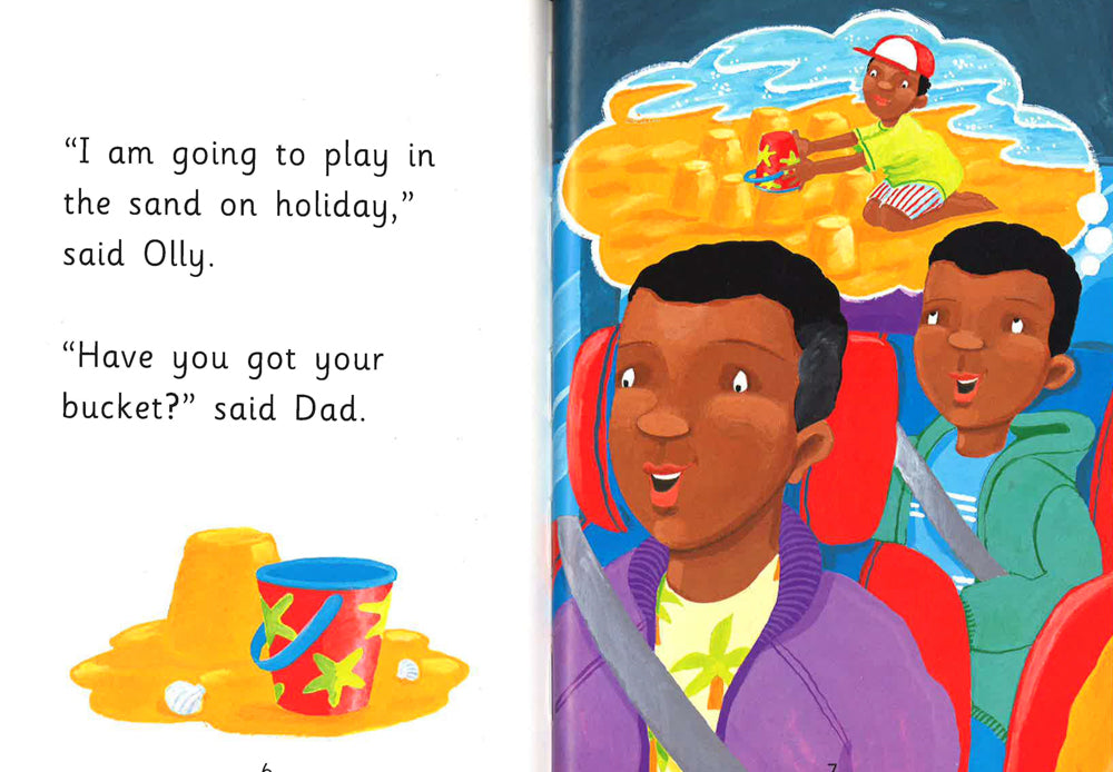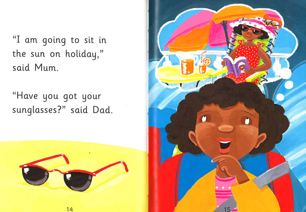 “I am going to swim in the pool on holiday,” said Cara. “Have you got your swim ring?” said Dad. “Oh, no!” said Cara.