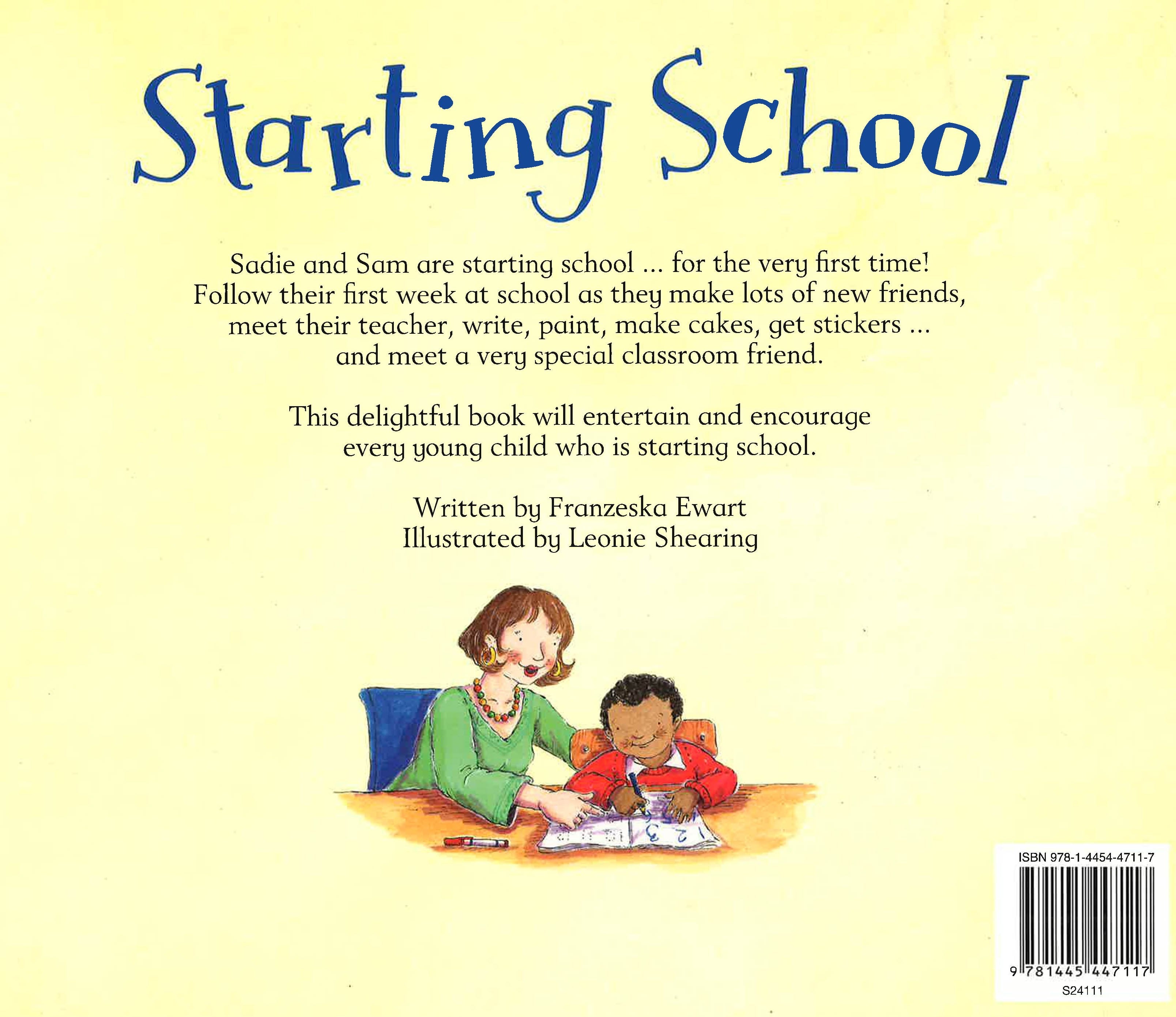 Sadie and Sam are starting school……for the very first time! Follow their first week at school as they make lots of new friends, meet their teacher, write, paint, make cakes, get stickers……. and meet a very special classroom friend.