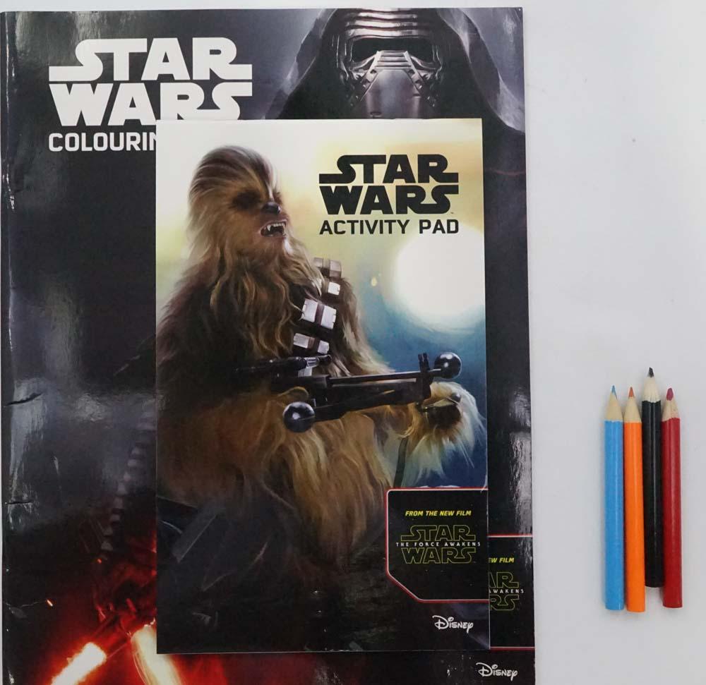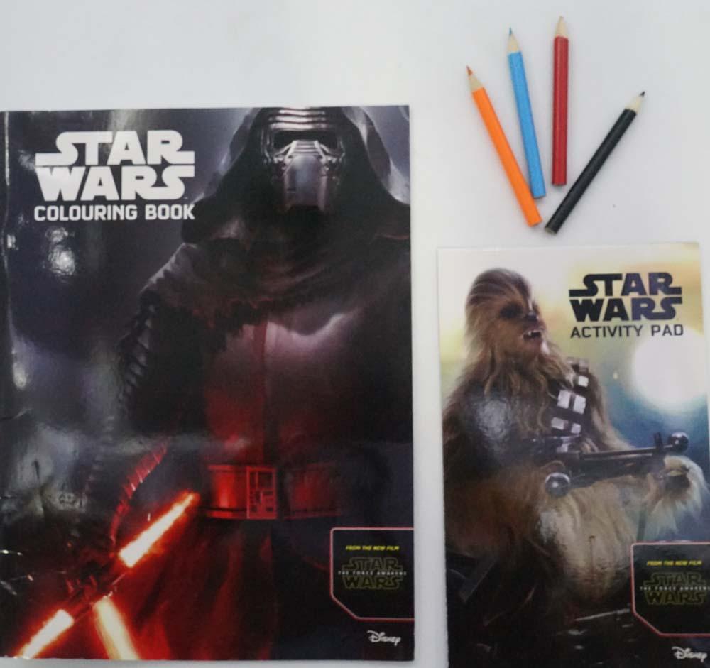 An action-packed activity pack with a colouring book, an activity pad and 4 pencils.