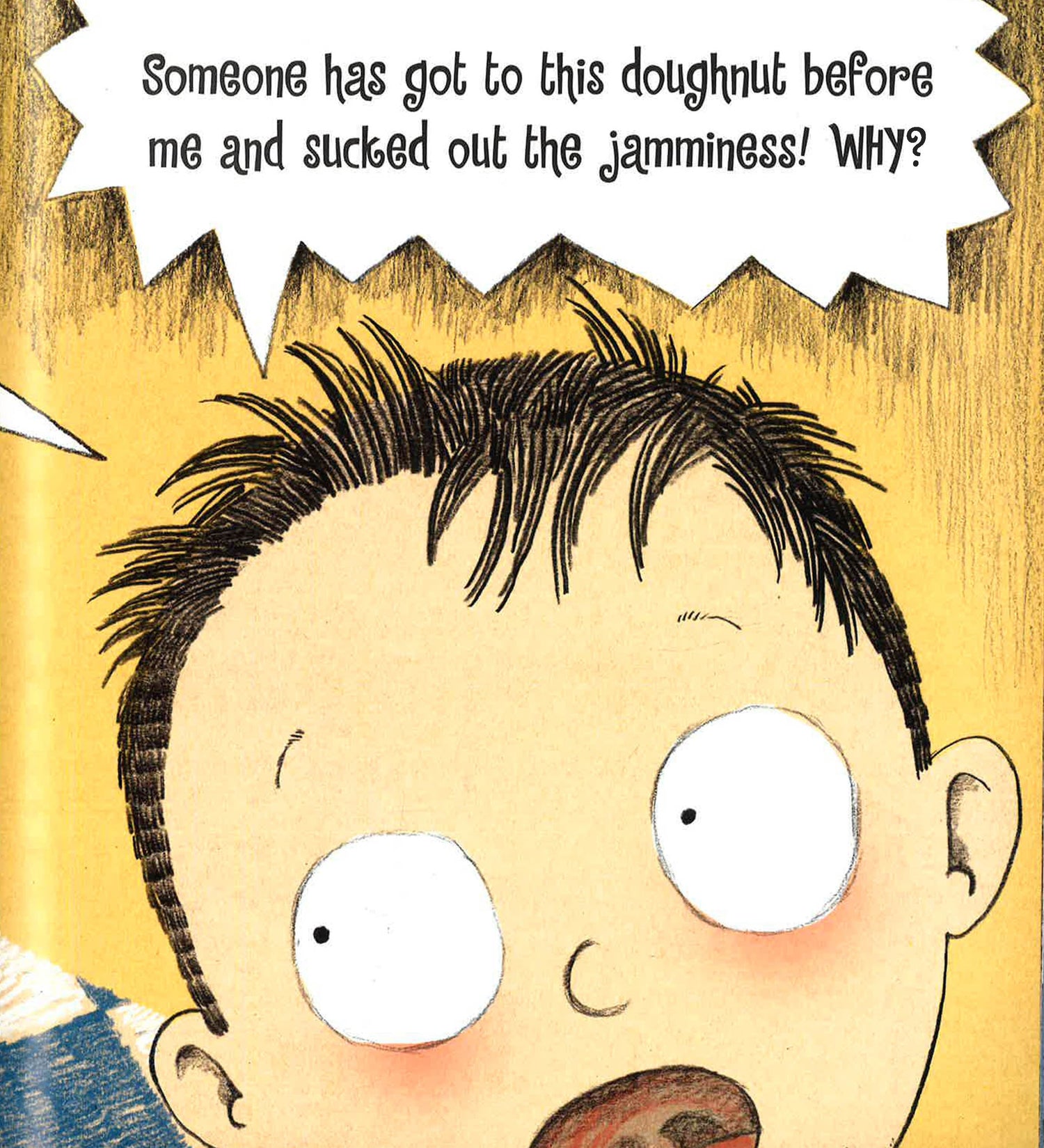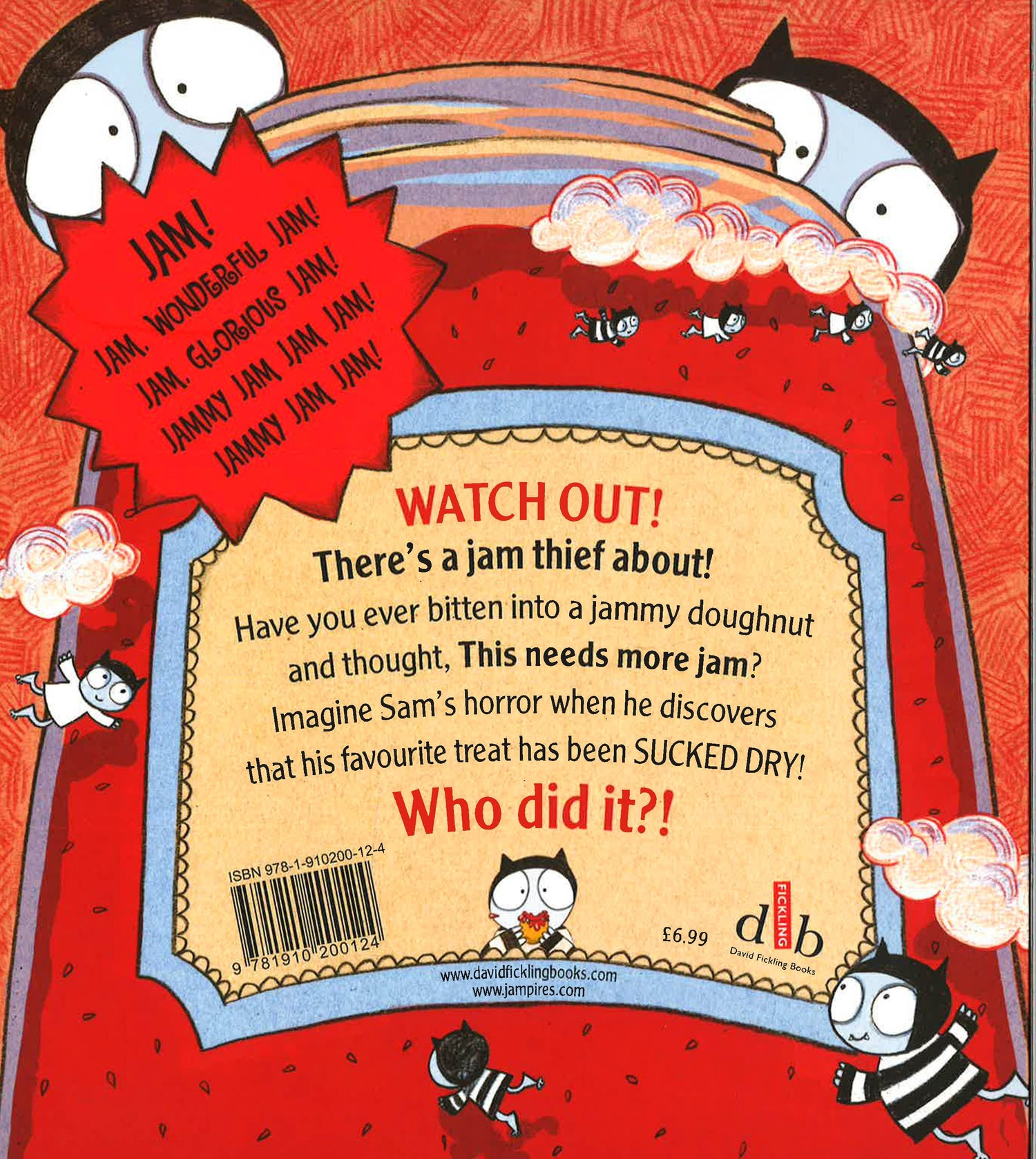 WATCH OUT! There's a jam thief about! Have you ever bitten into a jammy doughnut and thought - This needs more jam? Imagine Sam's horror when he discovers that his favourite treat has been SUCKED DRY! Who did it?!