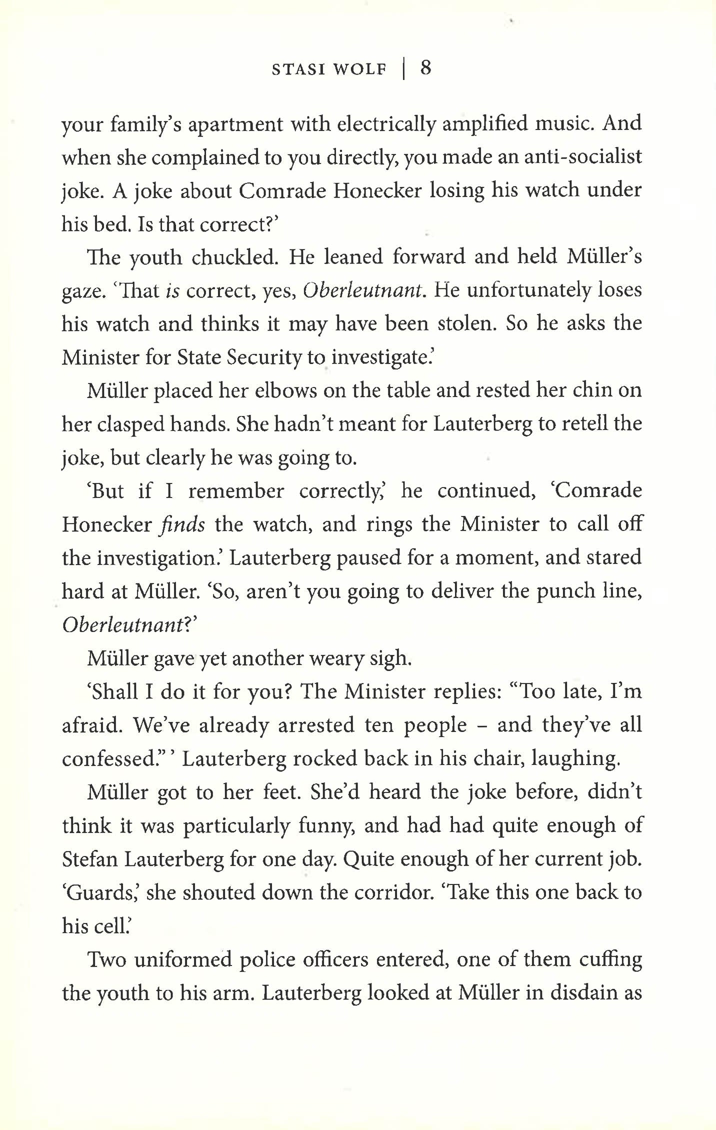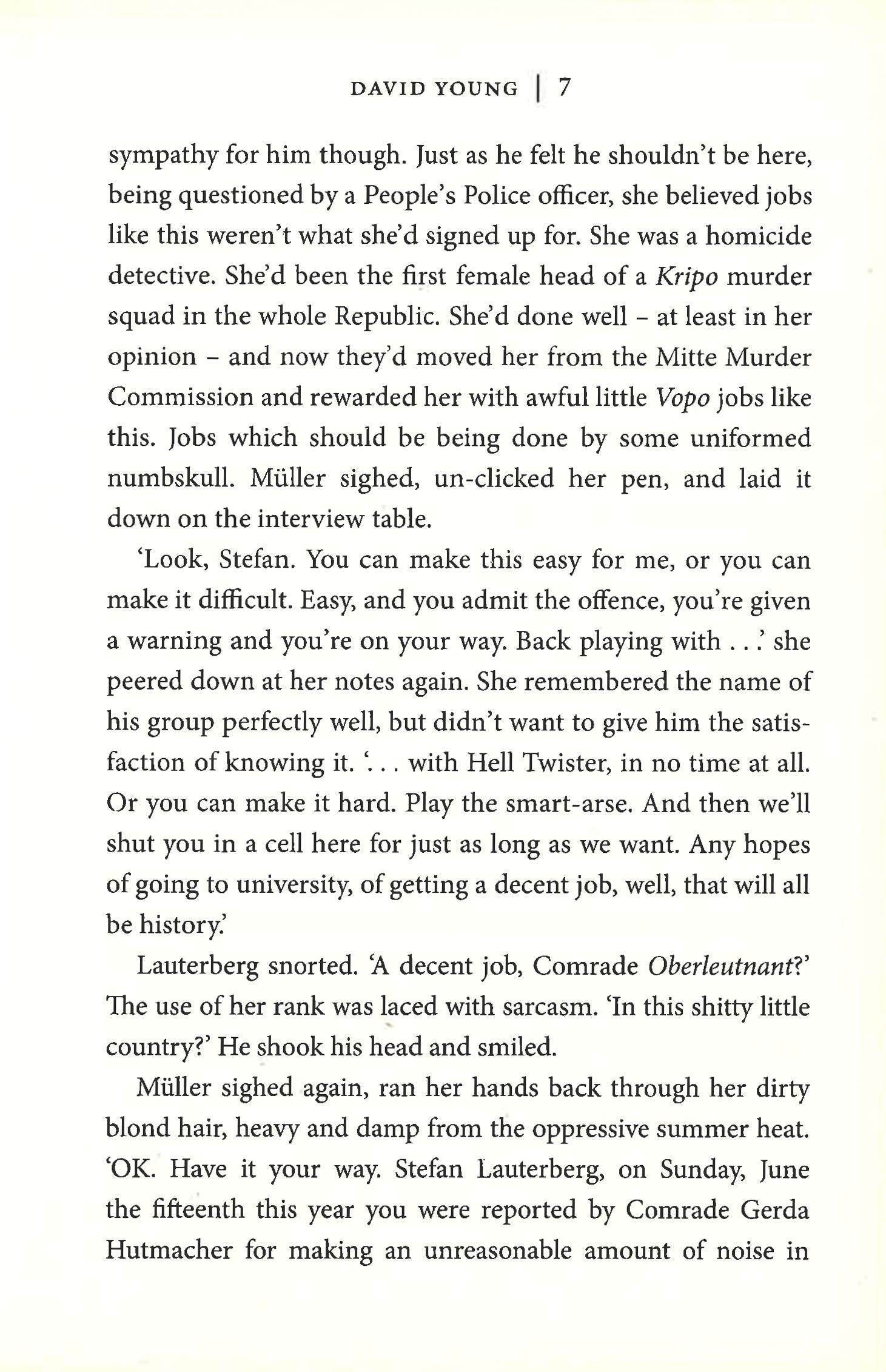 How do you solve a murder when you can't ask any questions? The gripping new thriller from the bestselling, award-winning author of Stasi Child. East Germany, 1975. Karin Muller, sidelined from the murder squad in Berlin, jumps at the chance to be sent south to Halle-Neustadt, where a pair of infant twins have gone missing. But Muller soon finds her problems have followed her. Halle-Neustadt is a new town - the pride of the communist state - and she and her team are forbidden by the Stasi from publicising the disappearances, lest they tarnish the town's flawless image. Meanwhile, in the eerily nameless streets and tower blocks, a child snatcher lurks, and the clock is ticking to rescue the twins alive . . .