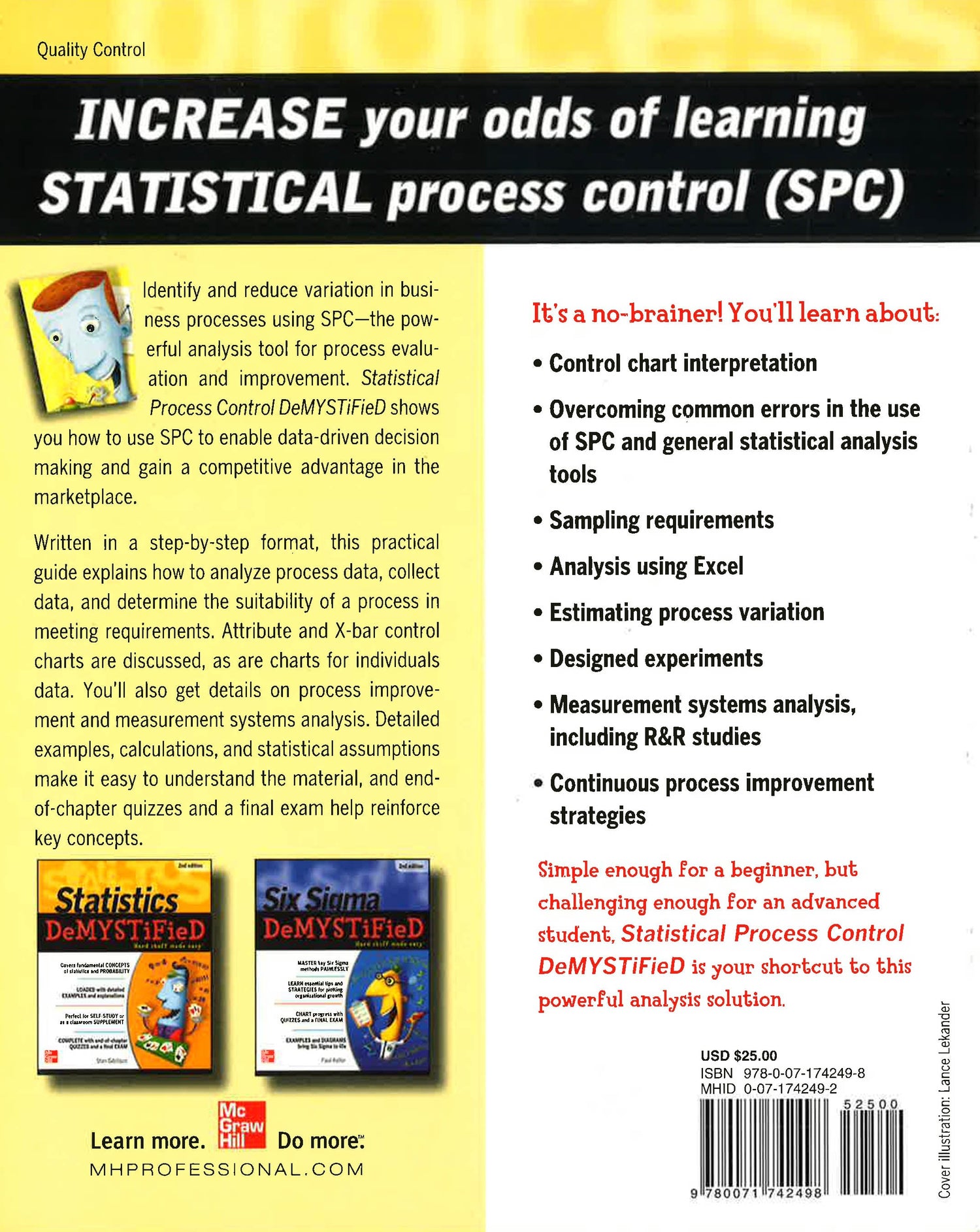 Simple enough for a beginner, but challening enough for an advanced student, Statistical Process Control Demystified is your shortcut to this powerful analysis solution.