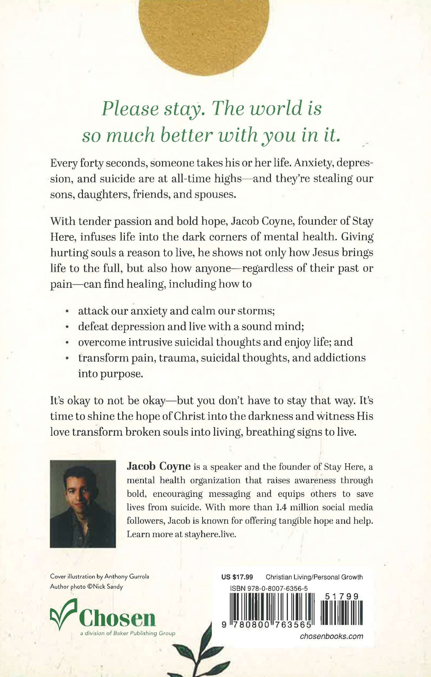With tender passion and bold hope, Jacob Coyne, founder of Stay Here, infuses life into the dark corners of mental health. Giving hurting souls a reason to live, he shows not only how Jesus brings life to the full, but also how anyone--regardless of their past or pain--can find healing, including how to