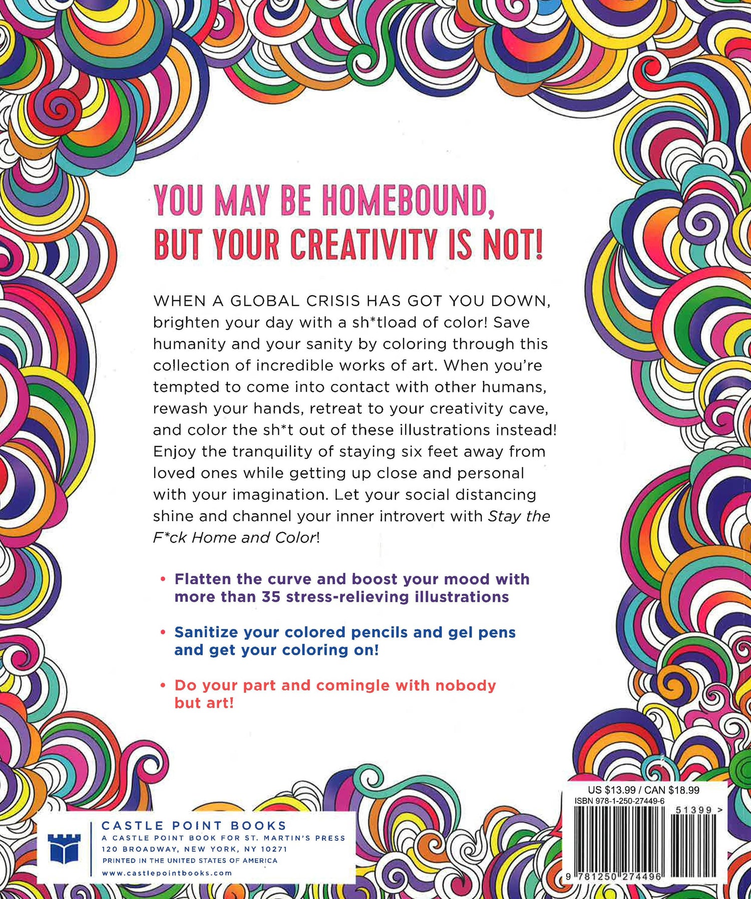 When a global crisis has got you down, brighten your day with a sh*tload of color! Save humanity and your sanity by coloring through a collection of incredible works of art. When you're tempted to come into contact with other humans, rewash your hands, retreat to your creativity cave, and color the sh*t out of these illustrations instead! Enjoy the tranquility of staying six feet away from loved ones while getting up close and personal with your imagination. Let your social distancing shine and channel your inner introvert with Caitlin Peterson's Stay the F*ck Home and Color! - Flatten the curve and boost your mood with more than 35 soothing illustrations - Sanitize your colored pencils and gel pens and get your coloring on! - Do your part and comingle with nobody but art!
