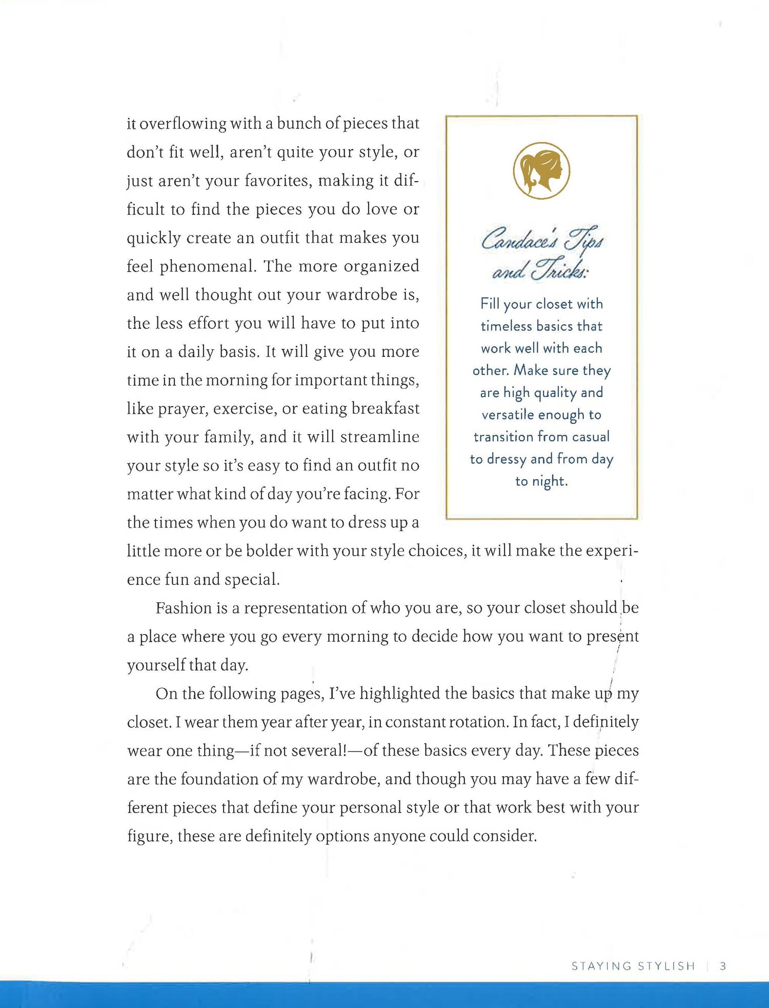 In her brand-new book Staying Stylish, Candace invites you behind the scenes of her day-to-day life and shares more than 100 tips and tricks for looking and feeling your best-both inside and out. Nurture your body, style, and soul as you read through this beautiful book full of photos, insider secrets, and exciting ideas to revamp your own life into its best possible version. She offers her insight into balance, spiritual growth, and looking great while doing it all.