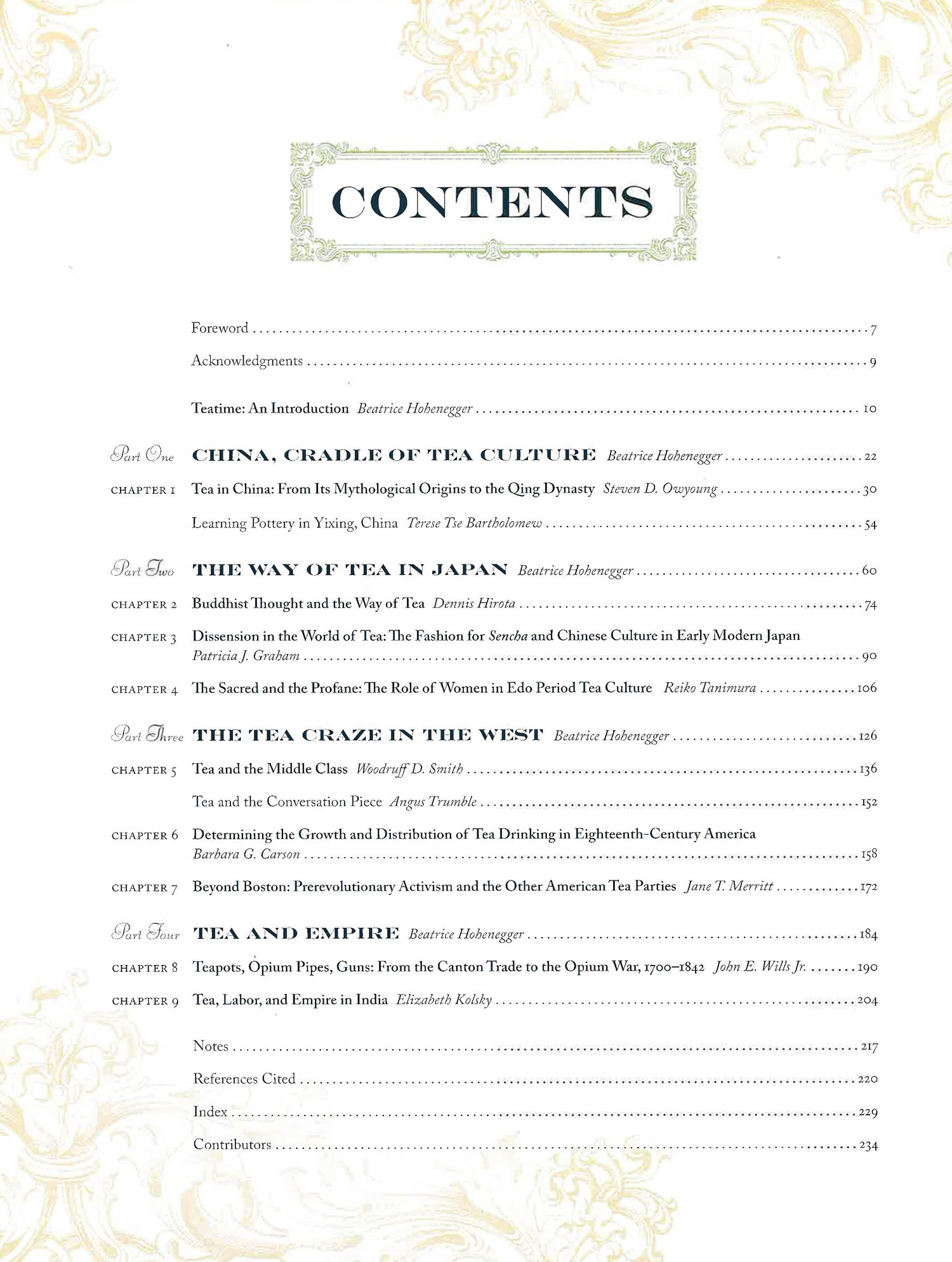 After water, tea is the most frequently consumed beverage on the face of the earth. In ancient China tea was regarded as one of the seven daily necessities of life; for many Japanese it has served as a ritual element in the quest for enlightenment. In England afternoon tea holds an immutable place in the popular imagination, while in the United States it is often associated with the American Revolution. While various teas have been prepared in an assortment of ways and have played parts in countless culinary practices, it is also important to note that tea is and nearly always been a highly important commodity. As such, it has played a variety of striking and often paradoxical roles on the world stage--an ancient health remedy, an element of cultural practice, a source of profound spiritual insights, but also a catalyst for brutal international conflict, drug trafficking, crushing taxes, and horrific labor conditions.In the course of Steeped in History, editor Beatrice Hohenegger and eleven distinguished historians and art historians trace the impact of tea from its discovery in ancient China to the present-day tea plantations of Assam, crossing oceans and continents in the process. In so doing, they examine the multitude of ways in which tea has figured in the visual and literary arts. These include not only the myriad vessels fashioned for the preparation, presentation, and consumption of tea but also tea-related scenes embellishing ceramics and textiles and forming the subject of paintings, drawings, caricature, songs, and poetry.