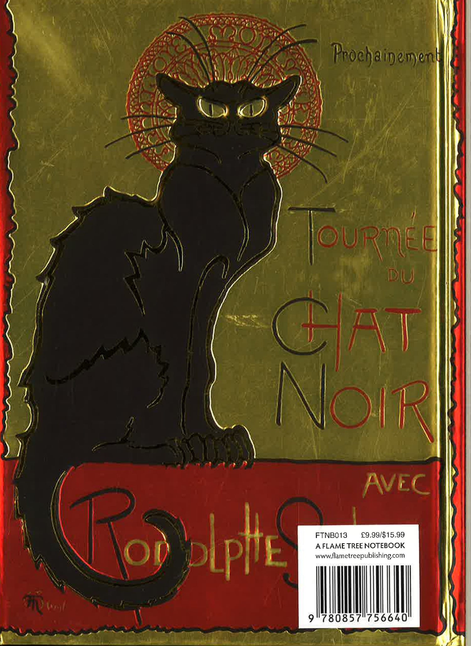 Part of a series of exciting and luxurious Flame Tree Notebooks. Combining high-quality production with magnificent fine art, the covers are printed on foil in five colours, embossed then foil stamped. And they're powerfully practical: a pocket at the back for receipts and scraps, two bookmarks and a solid magnetic side flap. These are perfect for personal use and make a dazzling gift. This example features Theophile Steinlen's charming art nouveau poster Tournee du Chat Noir.