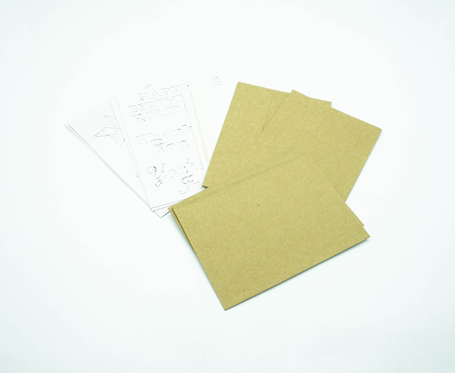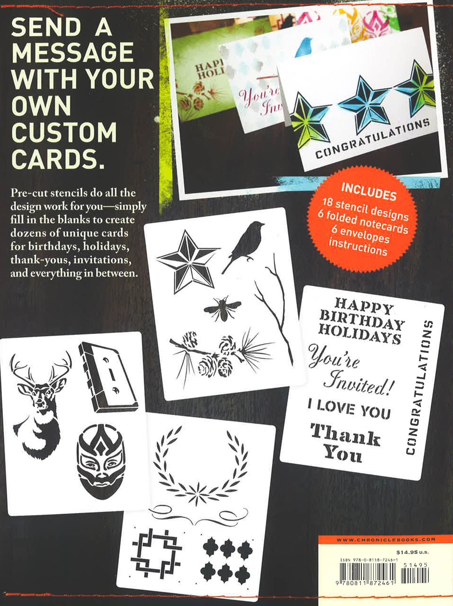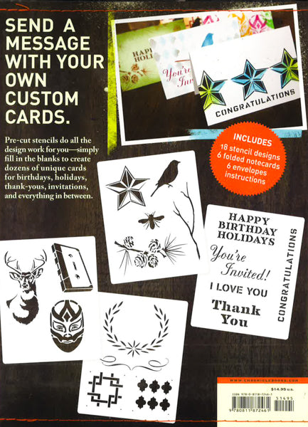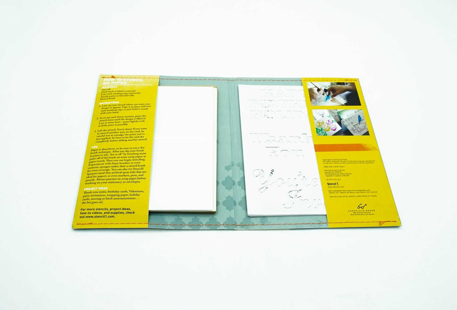 This polybagged portfolio includes 4 sheets of durable, reusable plastic stencils plus 6 folded notecards and 6 envelopes to customize. It is perfect for making custom thank-you notes, holiday cards, birthday cards, or everyday greetings.