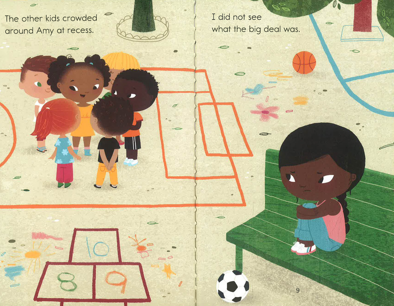 In This Makes Me Jealous, a young girl is proud of being the star athlete at her school. But when a new kid moves to town and she suddenly has to share the spotlight, jealousy gets the best of her. After a tough soccer matchup, the girl's gym teacher helps her to empathize with the new student and give her a chance. Soon, the girl learns that making new friends and being inclusive are more important than being the best.