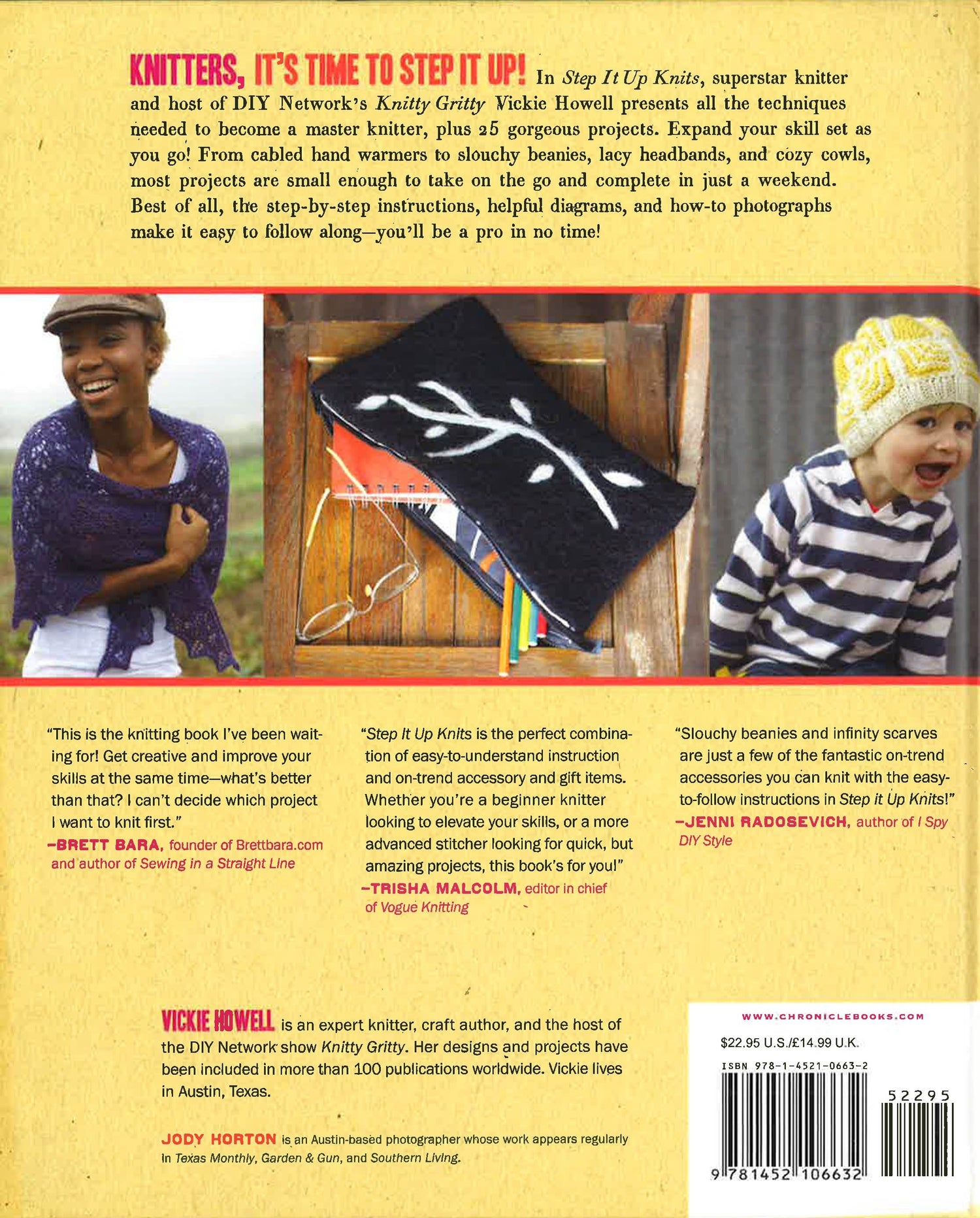 In Step It Up Knits, knitting superstar and Caron Yarns Celebrity Spokesperson Vickie Howell presents all the techniques needed to become a master knitter, plus 25 gorgeous projects. From cabled wrist warmers to slouchy beanies, lacy headbands, and cozy cowls, each project is small enough to take on the go and whip up in just a weekend. The step-by-step photographs, detailed instructions, helpful diagrams, and inspiring project shots make it easy to follow along. Beginners will become pros in no time!