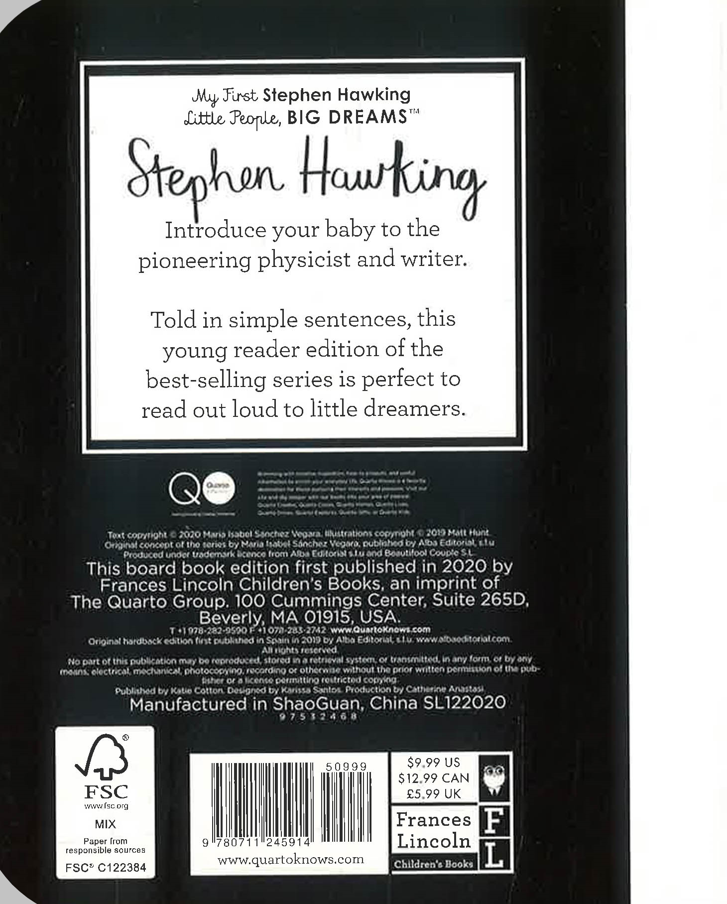 This board book version of Stephen Hawking—from the critically acclaimed, multimillion-copy best-selling Little People, BIG DREAMS series—introduces the youngest dreamers to the incredible life of this genius physicist and author.