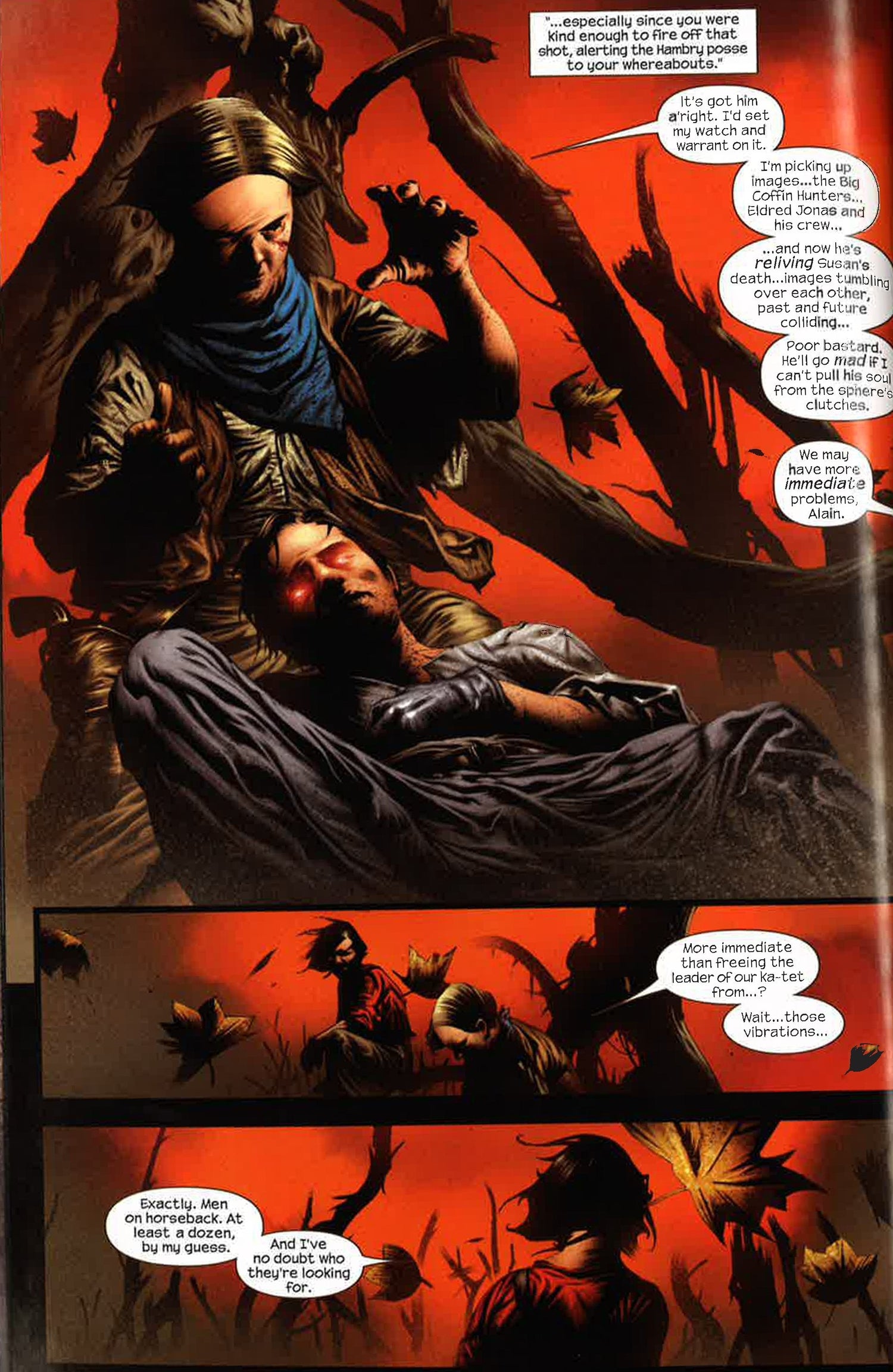 It's the return of the best-selling comic book series, inspired by Stephen King's epic The Dark Tower! Gunslinger Roland Deschain has seen the death of his lover Susan Delgado. And the Big Coffin Hunters who burned her at the stake are now in pursuit of Roland and his ka-tet Cuthbert and Alain. The friends are forced to flee into the desert with the deadly posse in hot pursuit...and Roland is in a coma!