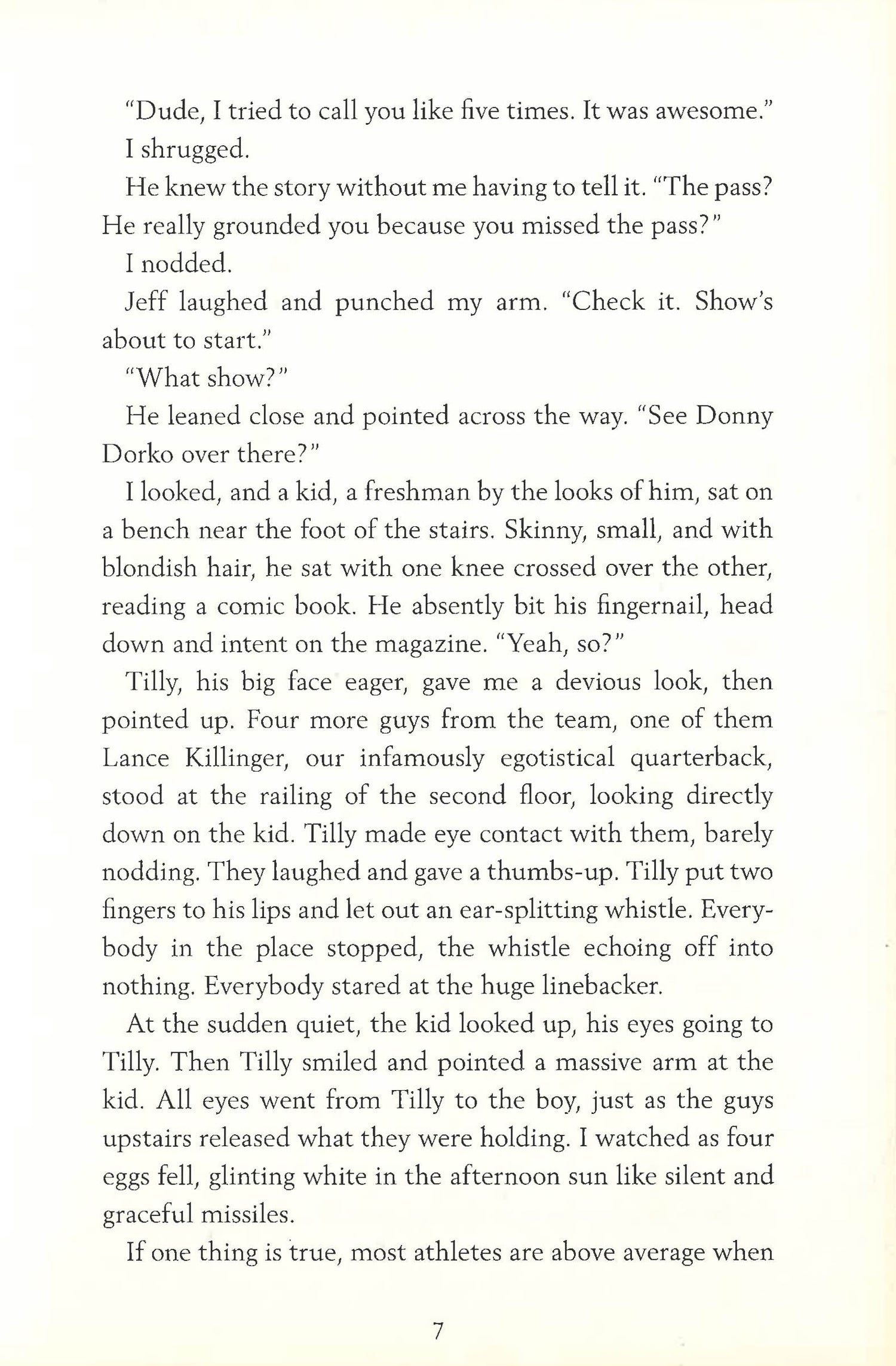 "Stick" is the best wide receiver in the history of his high school--the football seems magnetically drawn to his hands, hence his nickname. Preston is an outcast, and his pipsqueak stature and nerdy social status couldn't be further from a star athlete's. Stick puts on his football costume every week to make others--his teammates, his dad, everyone but himself--happy, but he's fallen out of love with the sport and feels that he's lost control of his future. Preston puts on his homemade superhero costume every night to help others, too: to avenge his father's murder, he's determined to right the wrongs he sees in his neighborhood and regain control of the flawed world he sees around him. A twist of fate brings this unlikely pair together in a friendship that is as odd as it is true. Each can see the other better than he can see himself, and in these unexpected reflections lies a chance for mutual redemption.