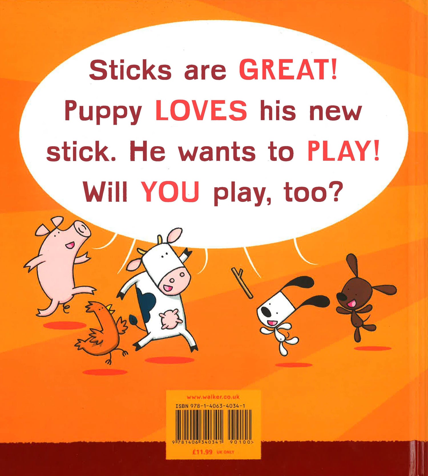 A debut picture book from an exciting new picture book talent all about an adorable little puppy, one stick, and his quest for a friend! Little Puppy has discovered a STICK and sticks are a LOT of fun. With abounding enthusiasm, he goes in search of a playmate. He sees Bird - aha! - someone to play with! But Bird would much rather eat juicy worms. Hmmm ...what about Cow? Or Pig? Who will be Puppy's friend? A riot of colour frames this hilarious story all about making a friend and, without saying very much at all, finding someone who understands you.