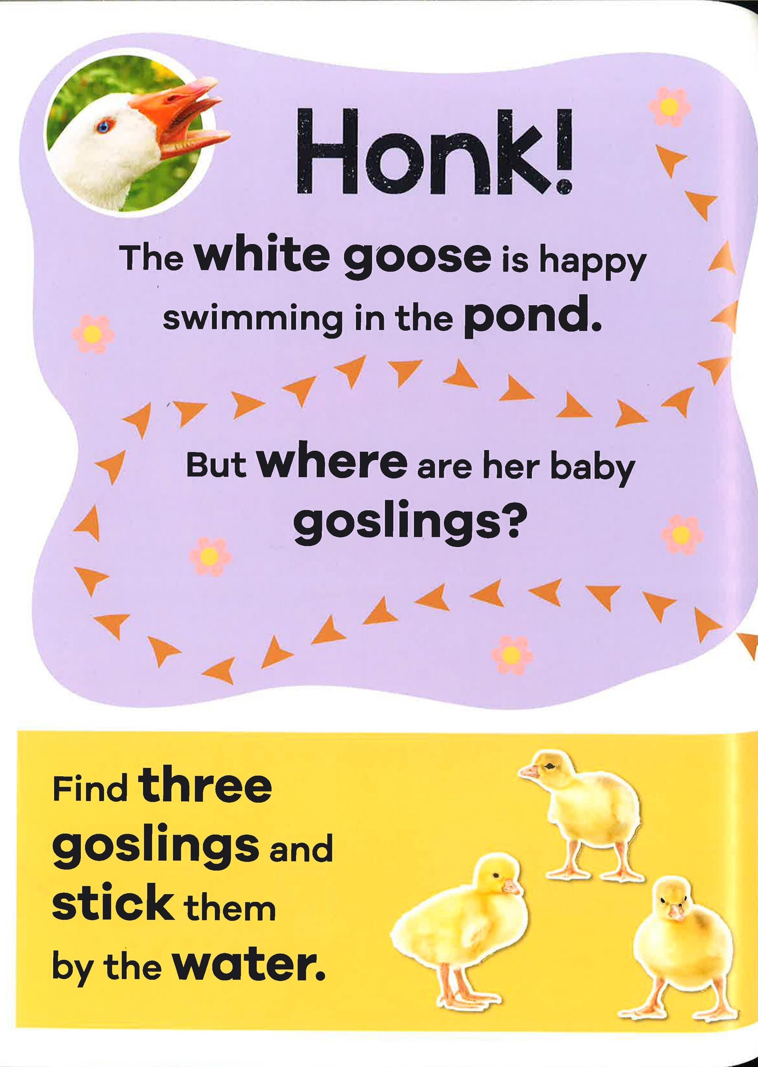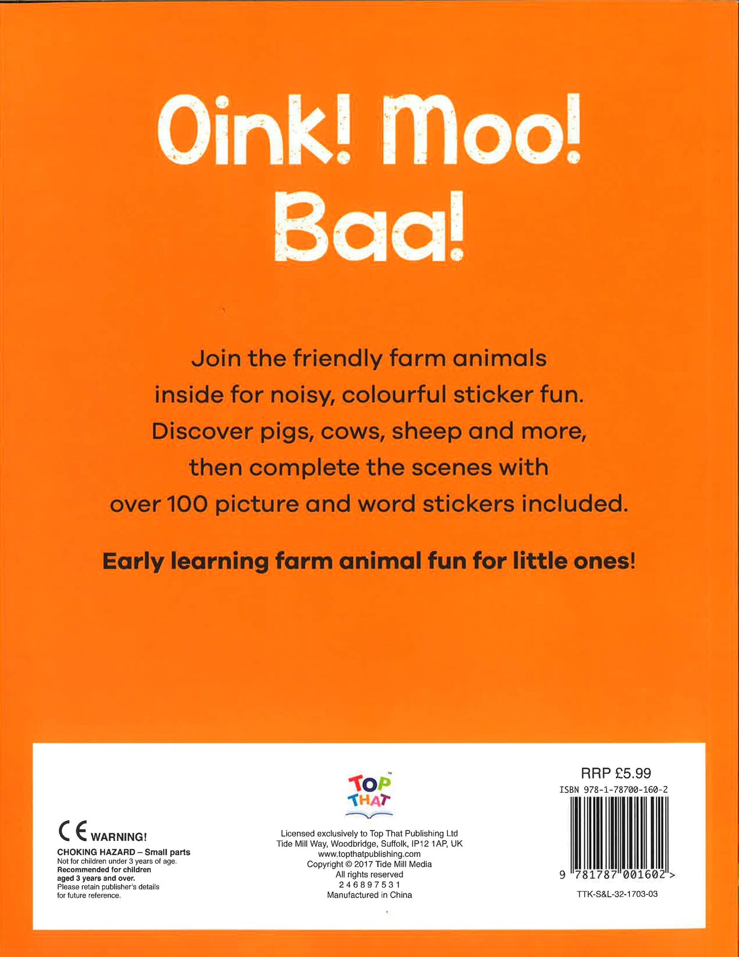 Learning about farm animals is great fun with this brand new Stick & Learn series. In Moo! On the Farm, girls and boys age 3 and up will discover a farm animal on every spread, including cow, pigs, sheep, chickens and ducks. Simple, easy-to-read text about each animal, together with bold, colourful graphics and photographic imagery, will entice young learners to find and place over 100 big reusable picture and word stickers, which are included at the back of the book. Onomatopoeic words throughout add to the early learning fun for parent-child sharing.