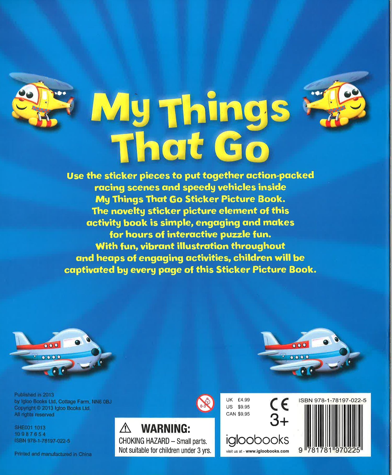 Use the sticker pieces to put together action-packed racing scenes and speedy vehicles inside My Things That Go Sticker Picture Book. The novelty sticker picture element of this activity book is simple, engaging and makes hours of interactive puzzle fun. With fun, vibrant illustration through and heaps of engaging activities, children will be captivated by every page of this Sticker Picture Book.