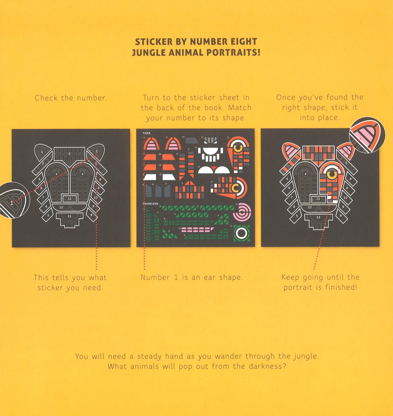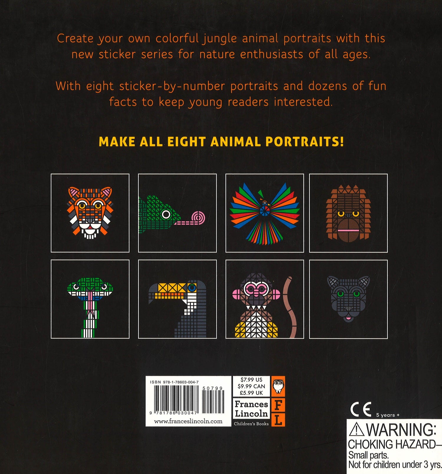 Create your own colorful jungle animal portraits with this new sticker series that's perfect for young animal enthusiasts! Featuring eight sticker-by-number portraits of jungle animals and packed with fun facts to learn as you sticker, this arty activity book provides hours of fun for little ones. With large stickers perfect for little hands and a straightforward sticker by number design, kids will enjoy creating stylish, vibrant portraits of jungle animals in their natural habitat.