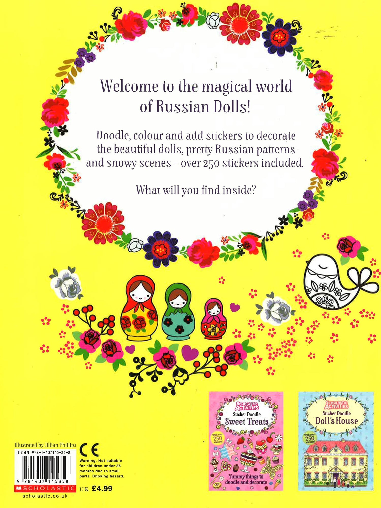 In Sticker Doodle Russian Dolls, children can discover the beautiful world of Russia's traditional matryoshka dolls, with patterns to complete, stickers to use, and doodles to complete. Colour St Basil's Cathedral, design beautiful Russian patterns and decorate Russian dolls. Includes over 250 reusable stickers.