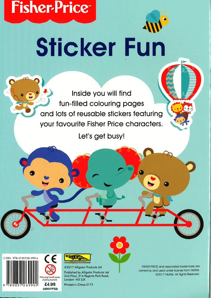 Inside you will find fun-filled colouring pages and lots of reusable stickers featuring your favourite Fisher Price characters. Let's get busy!