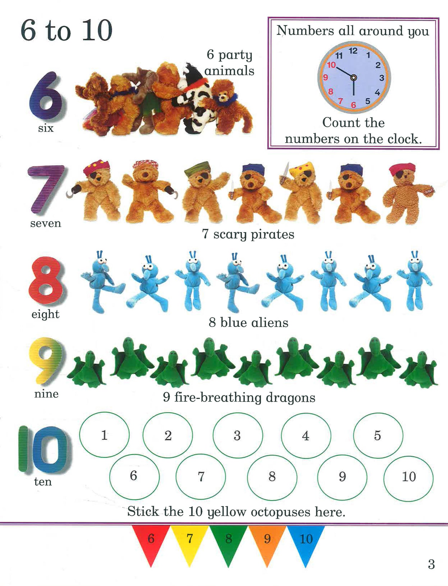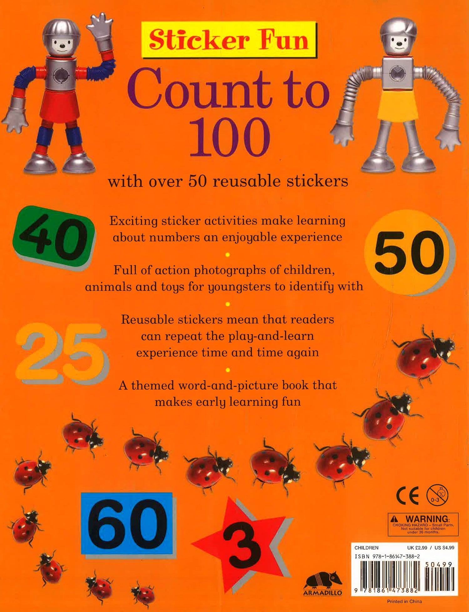 With over 50 reusable stickers. this title features exciting sticker activities that make learning about numbers an enjoyable experience. You can find the missing kittens to make 20, count three groups of pretty butterflies to make 30, put flags in the right order on a row of sandcastles, and much more. Pictures interact with simple text to help develop skills. You can play a game of snakes and ladders with your friends and learn to count at the same time! Reusable stickers mean that readers can repeat the play-and-learn experience time and time again. It is full of action photographs of children, animals and toys for youngsters to identify with. It is a themed word-and-picture book that makes early learning fun. Give your child an excellent start in mathematics with this stimulating sticker book. It is fun to look at and to use, and encourages children to recognize, sort and group numbers. Youngsters will take in the information as they locate stickers, answer simple questions and look at the kids, creatures and toys in the pictures.Readers are challenged to find the missing musical instruments to make 40, and to see how many things Lisa has put into each room of her house to make 50. What's more, the stickers are reusable, offering endless entertainment.