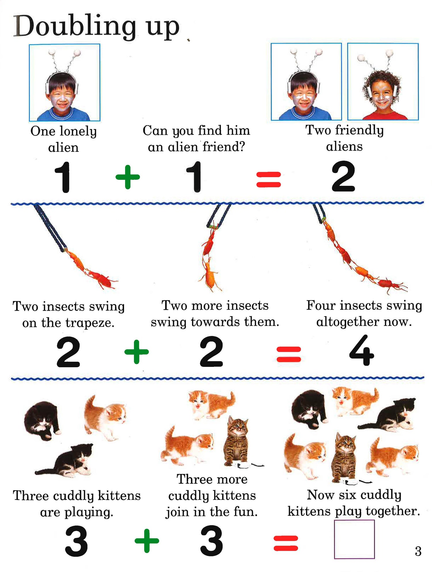 With over 50 reusable stickers, this is a lively introduction to arithmetic for preschool kids. You can add numbers together or take them away, filling in the answer or the missing part of the problem using the sticker sheets provided. You need to count how many dragons or potato heads there are, and subtract toy trucks or floating space teddies! The bright pictures interact with the simple text to help develop skills. Reusable stickers mean that readers can repeat the play-and-learn experience time and time again. It features full of action photographs of people, animals and everyday objects for youngsters to identify with. This is a themed word-and-picture book that makes early learning fun. Give your child an excellent start in sums with this stimulating sticker book. It enables youngsters to learn the numbers 1 to 10 and the basic processes of addition and subtraction through play. Entertaining photographs of real children and toys capture the young reader's interest and make numbers fun. Straightforward text sets simple challenges, such as adding up the smiling crabs, subtracting the bananas that the monkey has stolen, and helping Jenny to count on her fingers.What's more, the stickers are reusable, offering endless entertainment.
