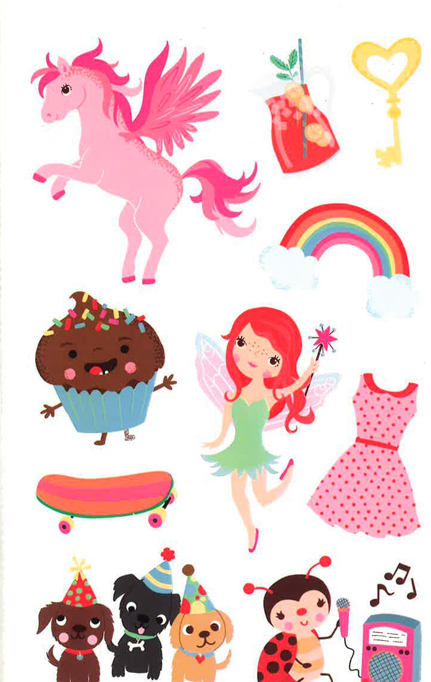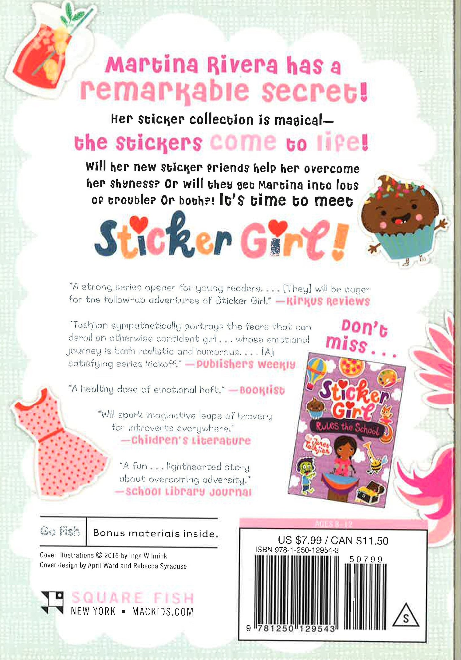 Martina Rivera has a remarkable imagination. But with two extroverted brothers at home, she’s always struggled to make a big impression on those around her. Life soon takes an exciting turn when Martina discovers the secret power of her sticker collection: They come to life! Among her magical sticker friends are Craig, a rambunctious talking cupcake; Nora, a karaoke-singing ladybug; and Lucinda, a very sleepy fairy. Will her new sticker friends help her overcome her shyness? Or will they get Martina in lots of trouble? Or both?! It’s time to meet Sticker Girl!Bonus feature: sticker sheet featuring all the magic stickers from Book 1 packaged with the book!