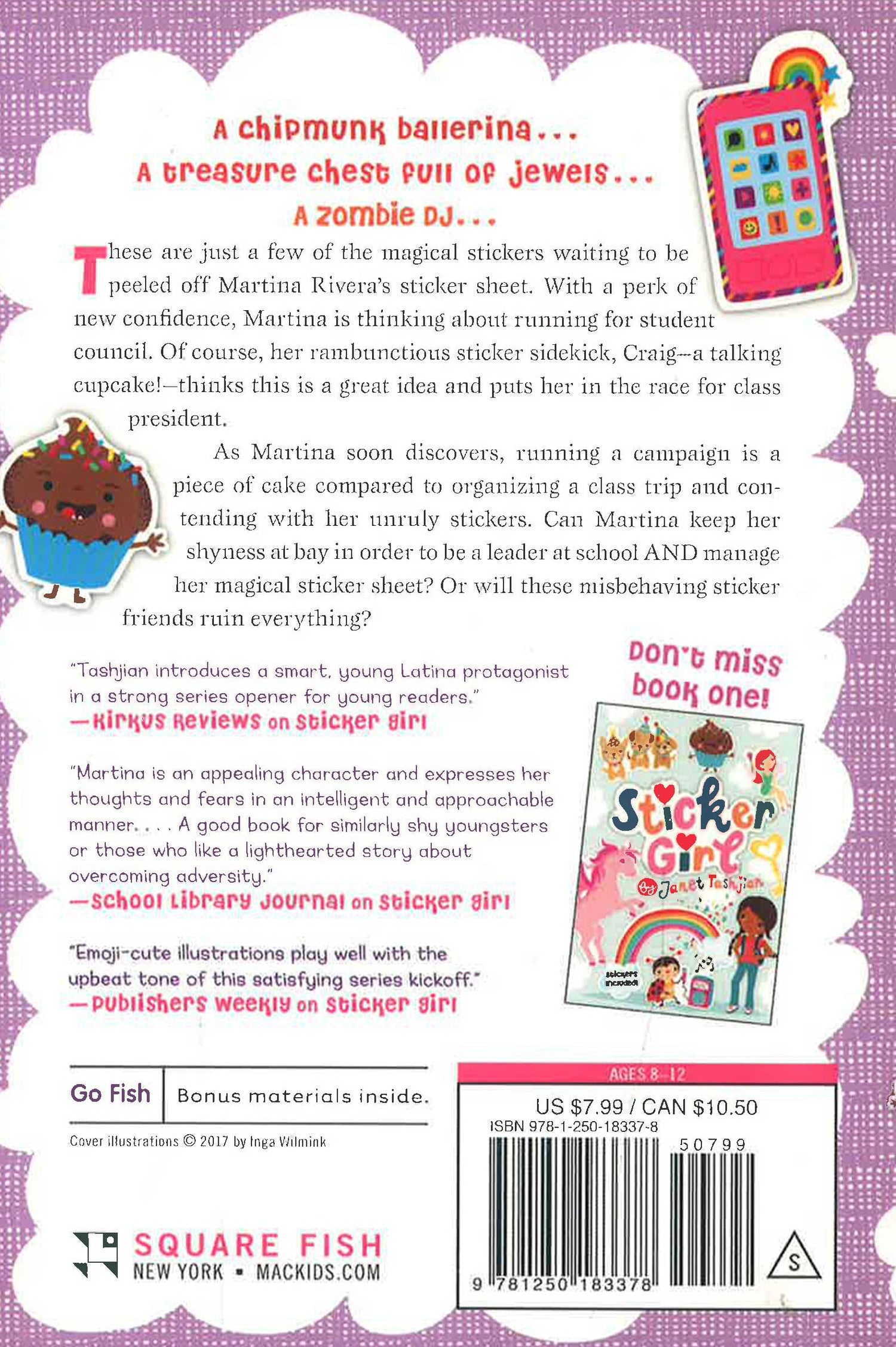 A Chipmunk Ballerina. A Treasure Chest Full of Jewels. These are just a few of the zany stickers ready to be peeled off Martina Rivera's new sticker sheet and come to life in Book 2 of the Sticker Girl series. With a newfound confidence in hand, Martina is thinking about running for student council. Her rambunctious sticker sidekick, Craig, thinks this is a great idea and volunteers her to run for class president. As Martina soon discovers, running a campaign is a piece of cake compared to organising a class trip and managing a horde of unruly stickers determined to create chaos. A magical new adventure awaits with Sticker Girl!
