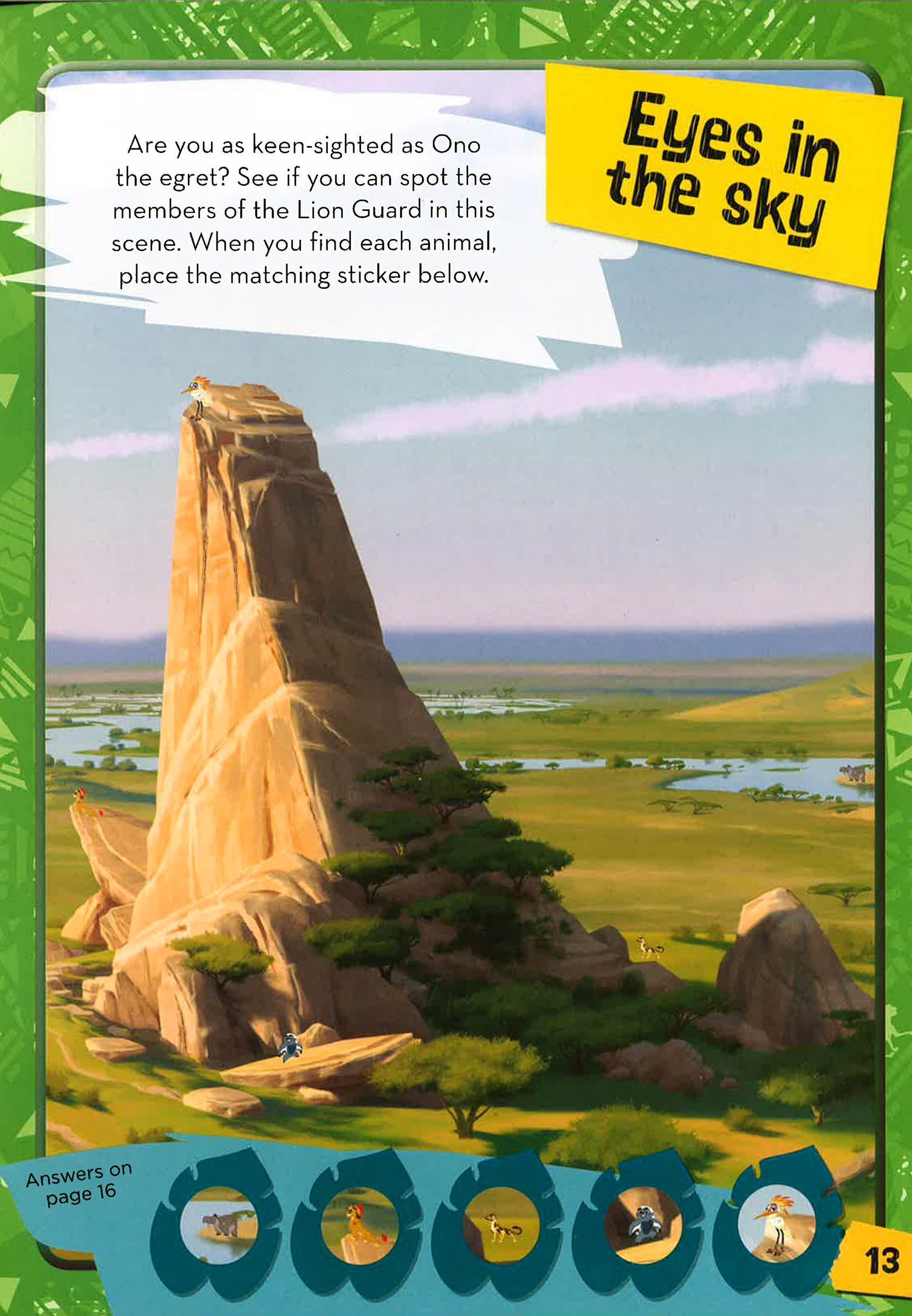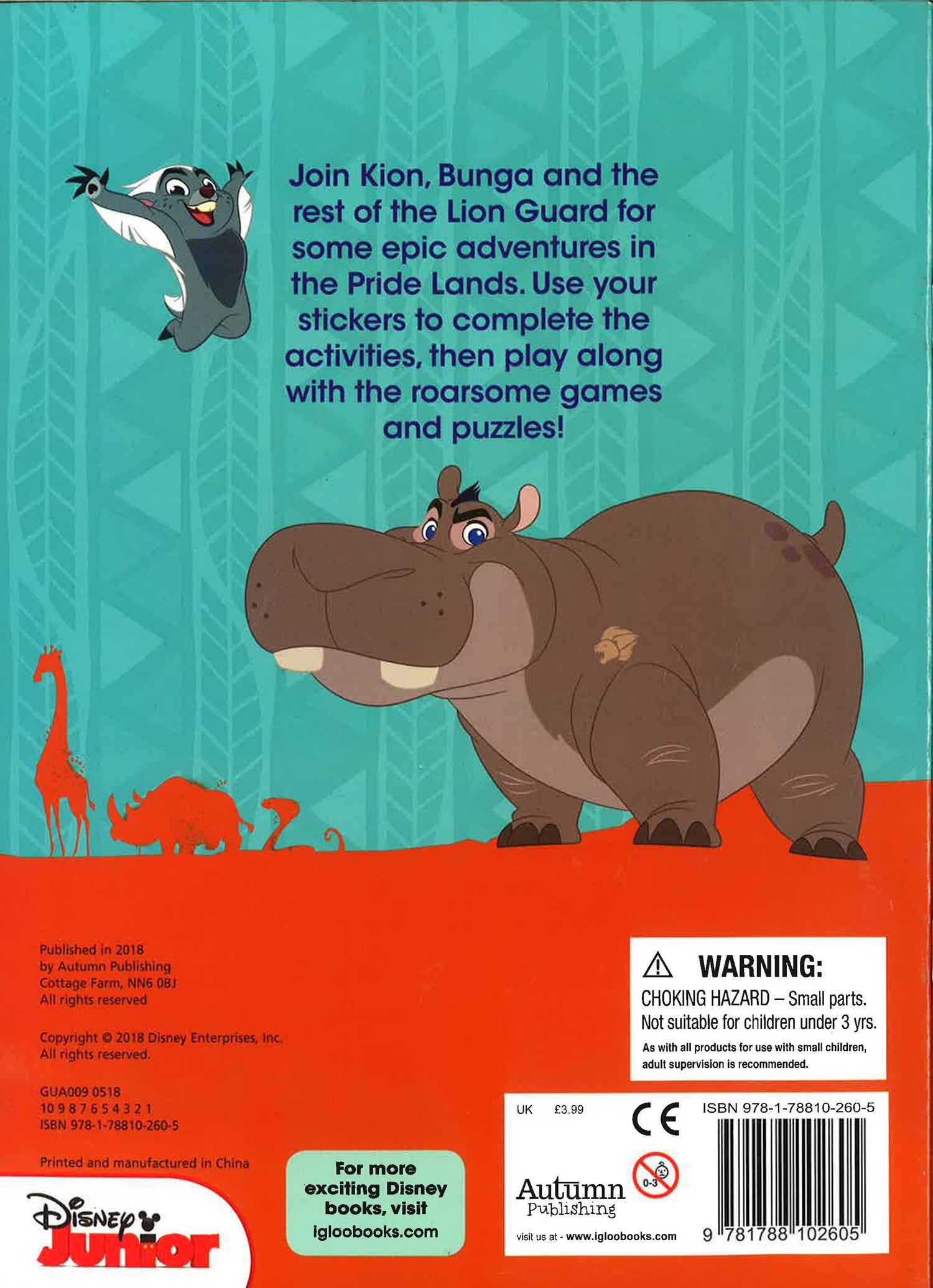 Join Kion, Bunga and the rest of the Lion Guard for some epic adventures in the Pride Lands. Use your stickers to complete the activities, then play along with the roarsome games and puzzles!
