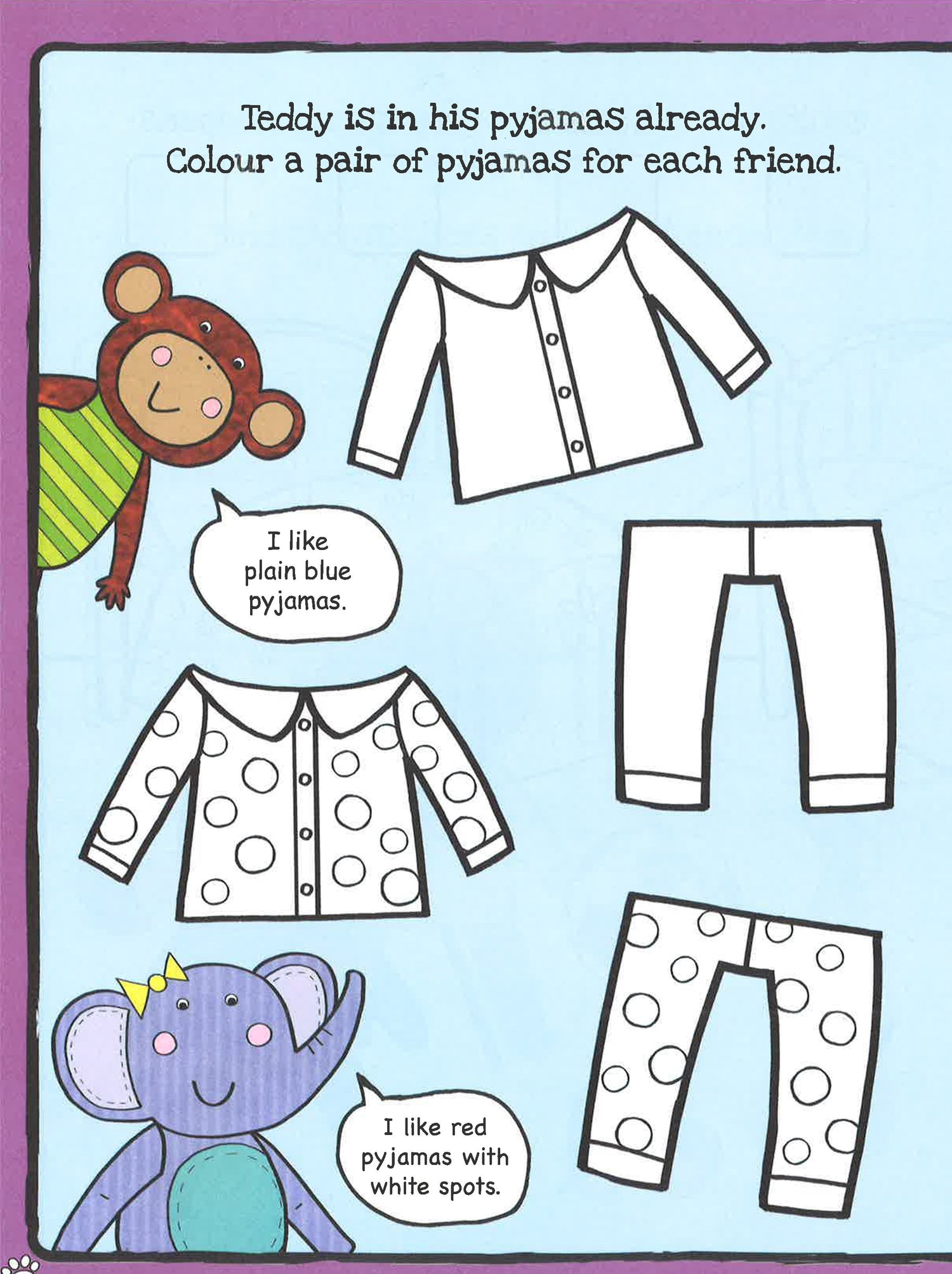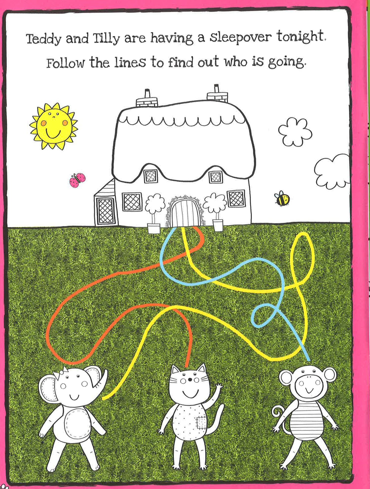 It's teddy time! There are counting activities, stickers to find and position, and tons of teddy bears to colour. Create your own pictures and stories with the fold-out playscene and stickers too! There is plenty to keep all clever bears busy!