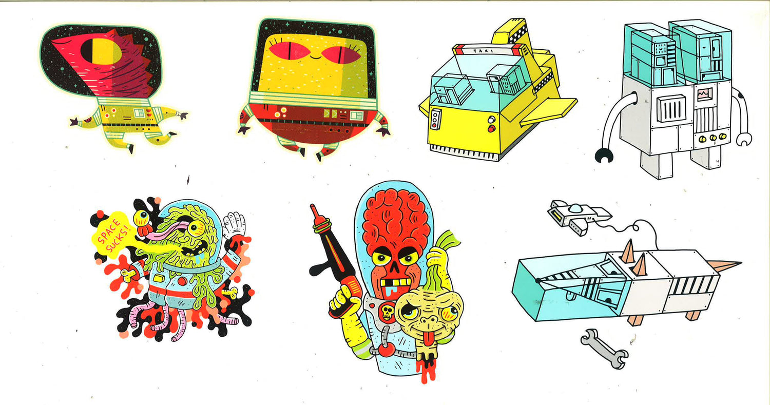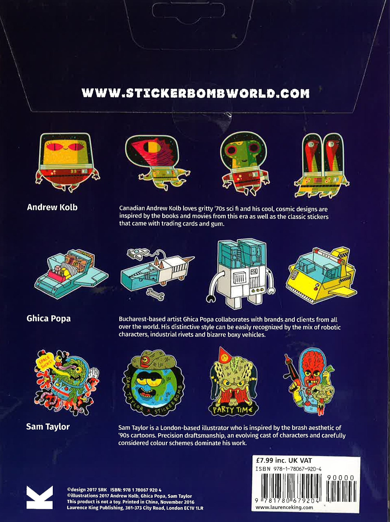 Twelve cool cosmic stickers from three cutting-edge artists: Andrew Kolb is a Canadian illustrator/designer whose work has appeared in numerous publications; Ghica Popa is known for his distinctive space robots and lunar vehicles, and has collaborated with Pepsi, Nike and Yahoo; Sam Taylor is a London-based illustrator who has worked with Converse, the BBC and Nickelodeon. These extra-large stickers (each one is approx. 17x10cm) are durable, splash proof and scratch proof. They'll look great, and last ages, whether decorating your walls or zipping around on skateboards and bikes.