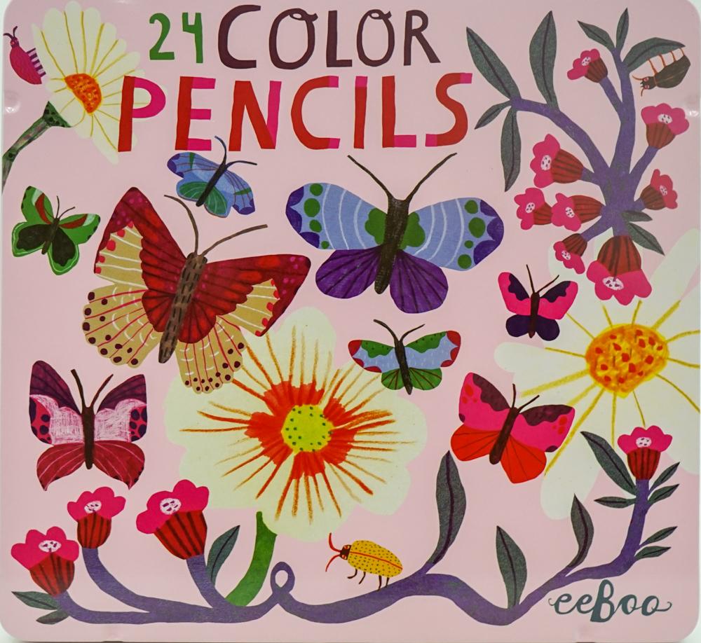 Eeboo 24 Colored Pencils Tin Butterflies And Flowers