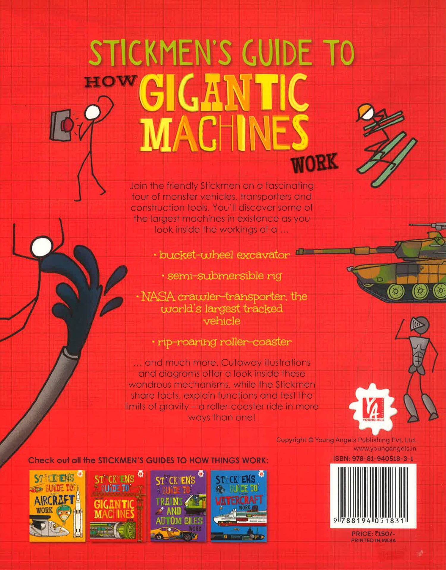 Join the friendly Stickmen on a fascinating tour of monster vehicles, transporters and construction tools. You’ll discover some of the largest machines in existence as you look inside the workings of a… • Bucket-wheel excavator • Semi-submersible rig • NASA crawler-transporter, the world’s largest tracked vehicle • Rip-roaring roller-coaster and much more. Cutaway illustrations and diagrams offer a look inside these wondrous mechanisms, while the Stickmen share facts, explain functions and test the limits of gravity – a roller-coaster ride in more ways than one!