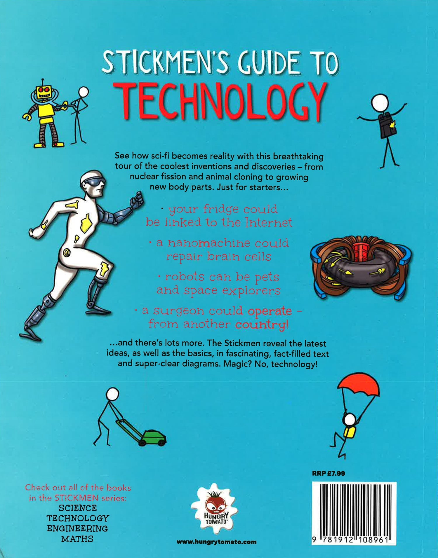Stickmen s Guide to Technology Find out how chocolate-flavoured strawberries could exist thanks to genetic modification, and how nanotechnology works. Discover what happens in a nuclear power station, how extreme weather is predicted, and how we can see into the infinity of space. See bionic body parts in action and meet humanoid and animal robots in the making. Then greet a virtual tiger... STICKMEN S GUIDE TO STEM Jump aboard the friendly Stickmen s tour of the core subjects of Science, Technology, Engineering and Maths. Neat nuggets of text, colourfully illustrated, break down each subject into its components, and shows how they are organized. With these books you re armed and ready for STEM, and want to know more!