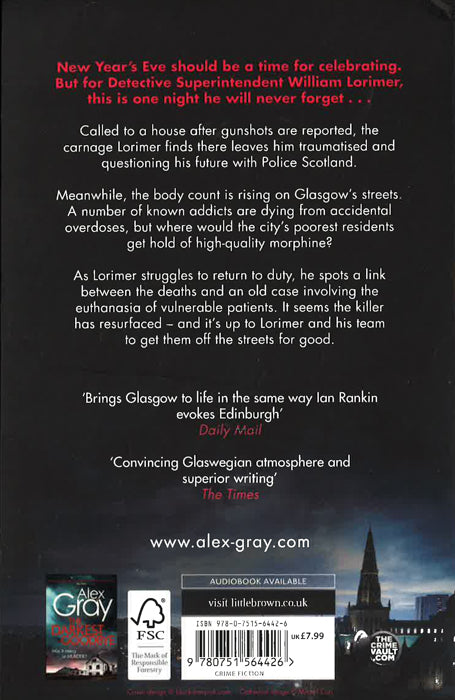 ***THE MILLION-COPY BESTSELLING DETECTIVE SERIES*** 'One of the best is Alex Gray' Literary Review 'Intensely exciting and atmospheric' Alexander McCall Smith 'Move over Rebus' Daily Mirror Crime always hides in the shadows . . . _______________New Year's Eve should be a time for celebrating. A chance to spend time with loved ones and look forward to the year ahead. For DSI William Lorimer, however, this New Year's Eve will be one that he will never forget. Called to a house after gunshots are reported, the carnage he finds there will have a powerful impact on his life - leaving him questioning his future with Police Scotland.Meanwhile, the man who eluded police capture during Lorimer's last investigation - the Quiet Release case involving the euthanasia of vulnerable patients - is back, and this time he's aligned with a powerful gangster from Glasgow's underworld.As Lorimer struggles to return to duty and stop this mystery killer once and for all, he discovers that there are forces high up within Police Scotland that are protecting the gangster that holds the key to finding the man they are looking for. Can Lorimer and his team get a killer off the streets for good before more innocent people die? Whether you've read them all, or whether you're coming to Alex Gray's highly acclaimed Lorimer series for the very first time, this is the perfect, page-turning winter read if you love Ann Cleeves, Val McDermid or Ian Rankin. _______________ ***PRAISE FOR ALEX GRAY*** 'Convincing Glaswegian atmosphere and superior writing' The Times 'Brings Glasgow to life in the same way Rankin evokes Edinburgh' Daily Mail 'Exciting, pacy, authentic' Angela Marsons 'Sums up everything that is golden and enthralling about a good book' Fully Booked