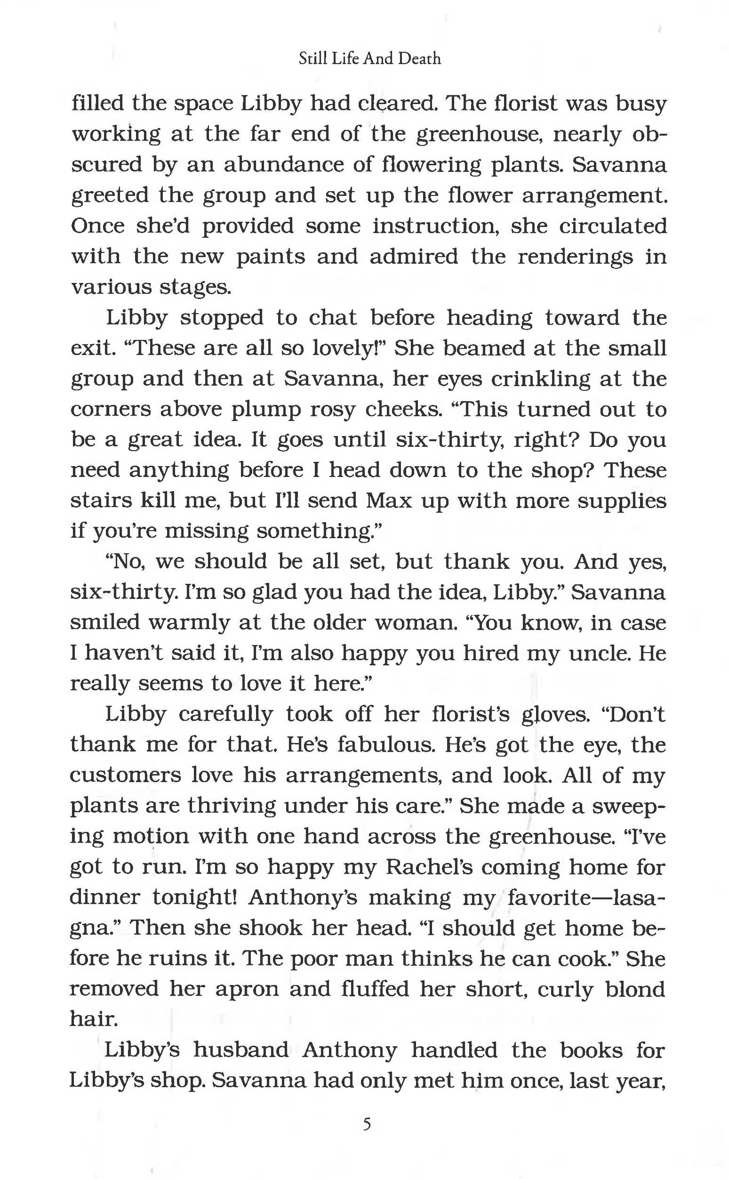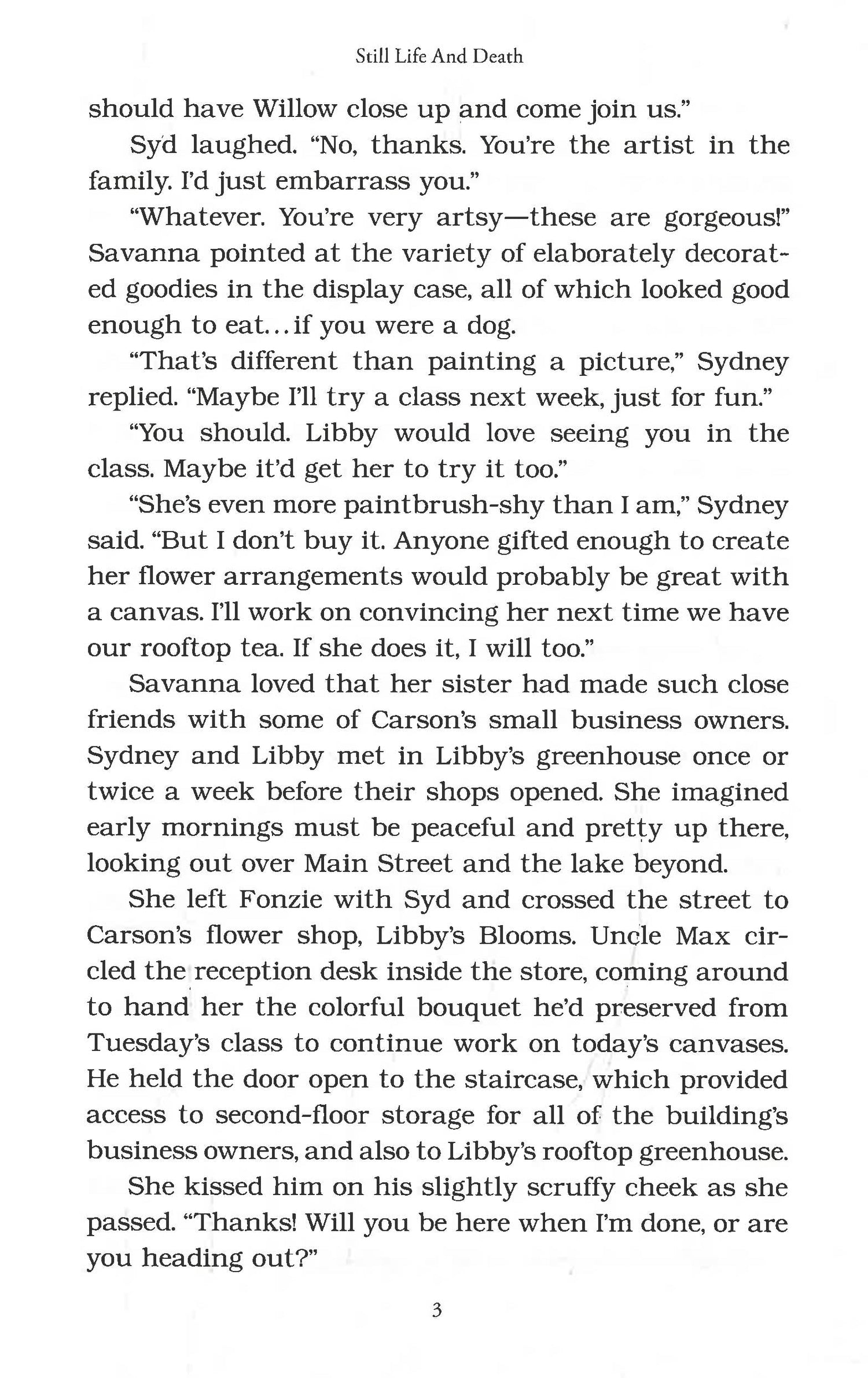 Savanna Shepherd, a former art authenticator turned grade school art teacher, is delighted when her Uncle Max and Uncle Freddie move to Carson. Uncle Max takes a job at Libby's Blooms, where Savanna teaches a still life painting class for adults. But one morning, Uncle Max finds a dead body in the rooftop greenhouse'and even worse, it looks like an inside job.