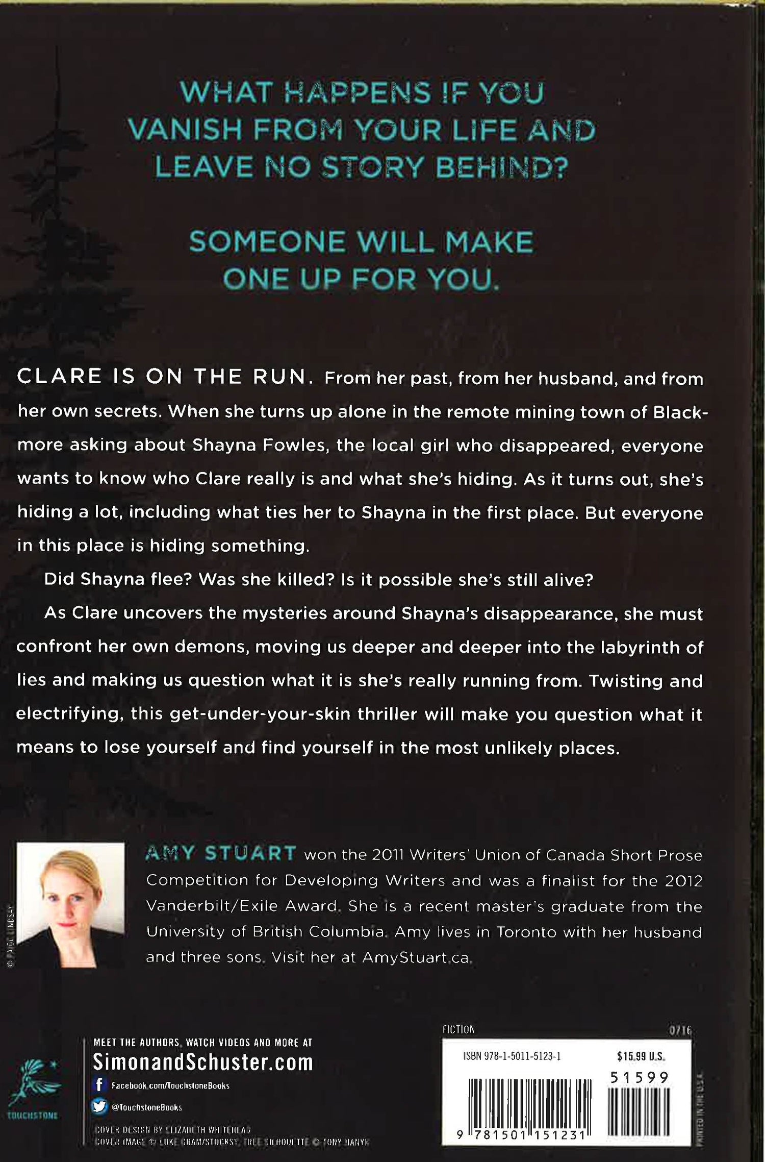 Clare is on the run. From her past, from her husband, and from her own secrets. When she turns up alone in the remote mining town of Blackmore asking about Shayna Fowles, the local girl who disappeared, everyone wants to know who Clare really is and what she's hiding. As it turns out, she's hiding a lot, including what ties her to Shayna in the first place. But everyone in this place is hiding something--from Jared, Shayna's secretive ex-husband, to Charlie, the charming small-town drug pusher, to Derek, Shayna's overly involved family doctor, to Louise and Wilfred, her distraught parents. Did Shayna flee? Was she killed? Is it possible she's still alive? As Clare uncovers the mysteries around Shayna's disappearance, she must confront her own demons, moving us deeper and deeper into the labyrinth of lies and making us question what it is she's really running from. Twisting and electrifying, this is a get-under-your-skin thriller that will make you question what it means to lose yourself and find yourself in the most unlikely places.