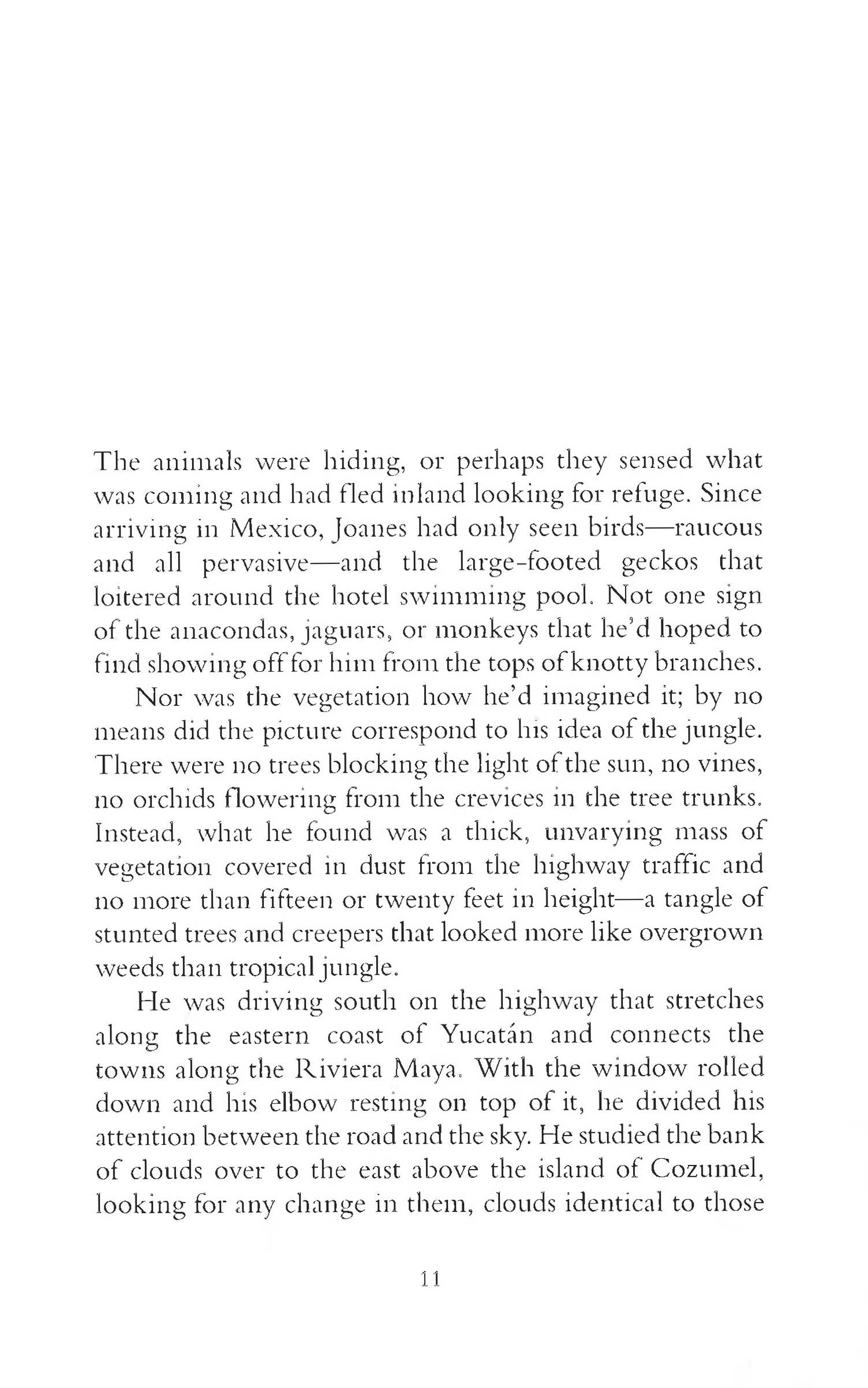 Riddled with problems, Joanes has to travel to the Mayan Ribera to attend his father-in-law's new wedding. There, forced to leave the hotel due to a hurricane alert, on his trip toward safer ground he has a chance encounter with an old college professor, whom he blames for the failure of his career. It will be Joanes' opportunity to settle accounts with him. Jon Bilbao is a Spanish literary writer and translator who lives in Bilbao, Spain.