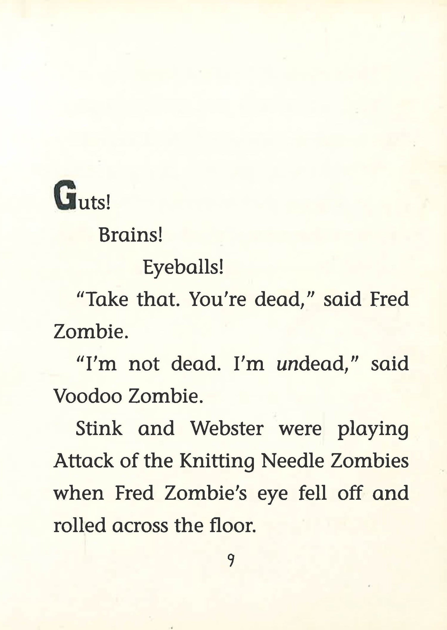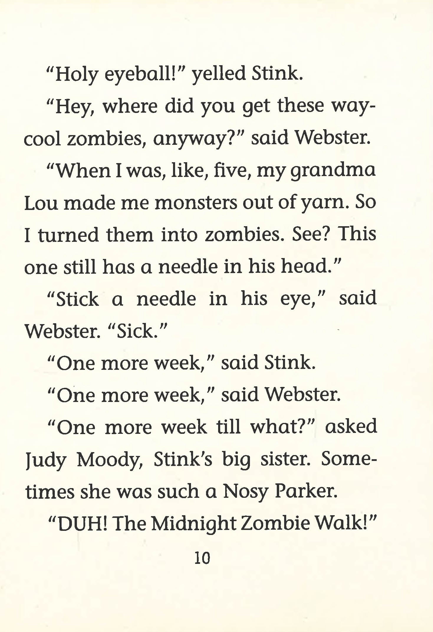 Everyone has zombies on the brain in the seventh book in the series, as Stink's school and a local bookshop cook up a frightfully fun Midnight Zombie Walk.Perfect for fans of Captain Underpants, Mr Gum and Geronimo Stilton, this is the seventh book in the series about Judy Moody's little "bother", Stink. There's only one week before the new book in the Nightmare on Zombie Street series comes out. Of corpse Stink will be first in line at the Blue Frog Bookstore to buy his copy and join the town's Midnight Zombie Walk! Until then, Stink and his friends keep busy making ketchup-stained zombie costumes, trying to raise money to buy the book and racking up points for Virginia Dare School's race to one million minutes of reading. But with all that talk about the undead, Stink is starting to have worries... Is he being haunted by zombies?! This fantastically fun, spooky story also celebrates libraries and the joy of reading.