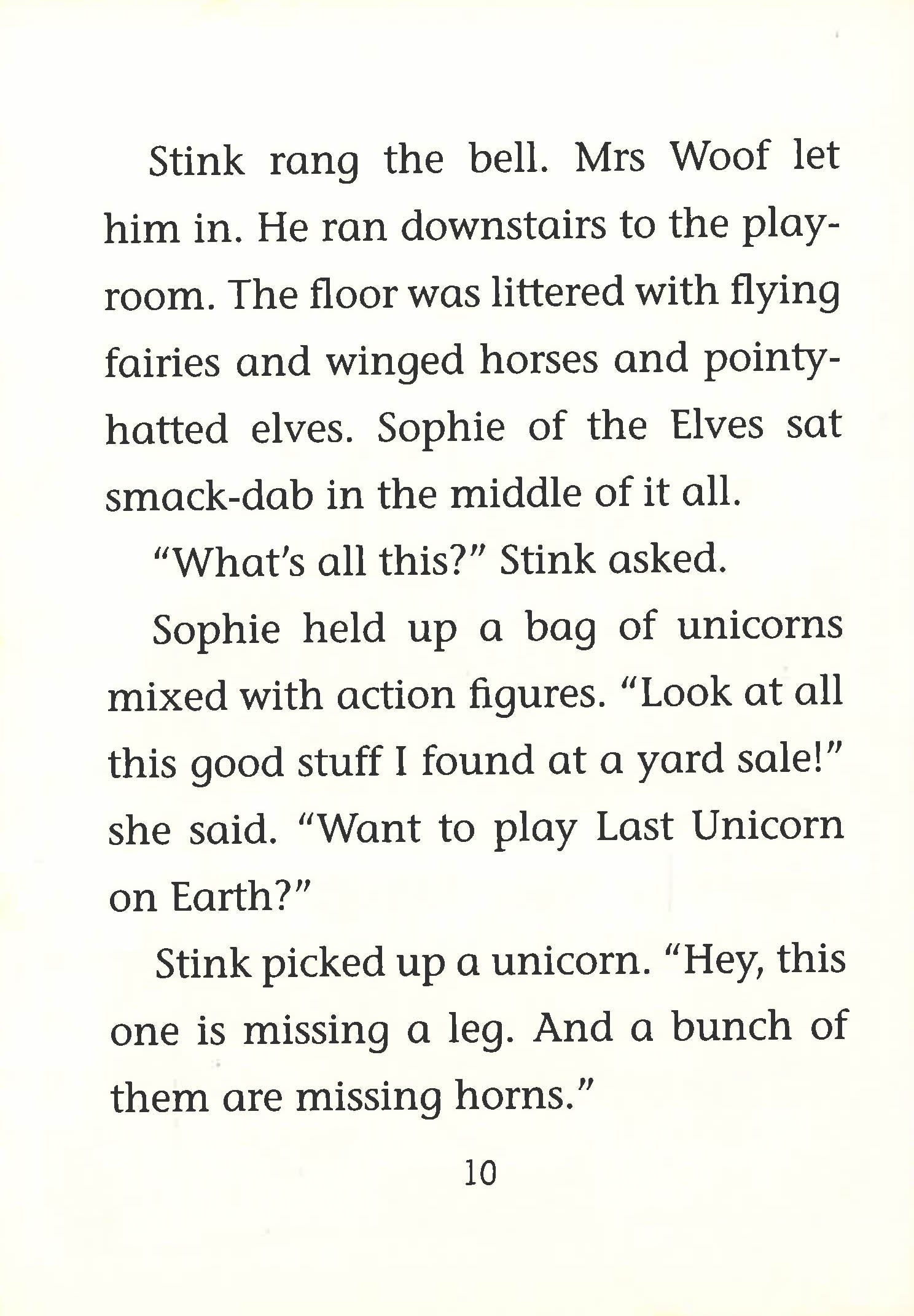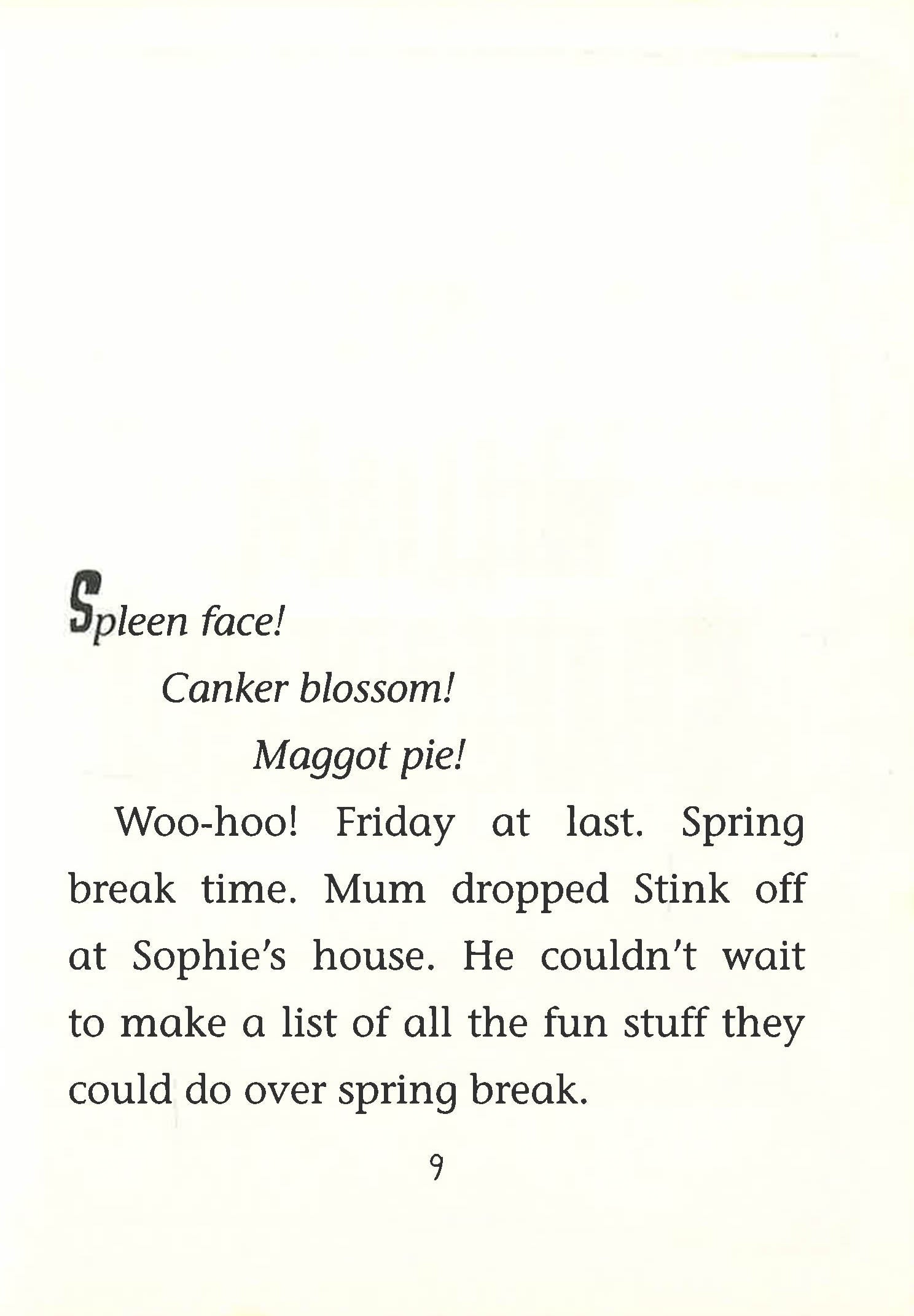When Stink learns that there will be sword-play and colourful cursing at Shakespeare camp, he weighs his options. To be or not to be ... a pumpkin-trouser-wearing-poetry-spouting Sprite? OR hang out at home with his sister, Judy Moody? Off to acting lessons Stink trots, only to discover that his nemesis, Riley Rottenberger, is a Sprite, too. What’s worse ― Stink is the ONLY BOY at camp! Hanged, be!
