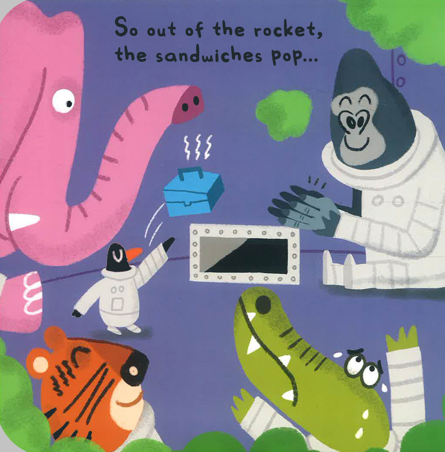 This sturdy board book includes pull-out sliders, which reveal extra story details—whether it’s the rocket launching or the mystery stinky culprit! Bright, playful illustrations, and lovable animal characters will make Stink In Space! a firm family favorite.