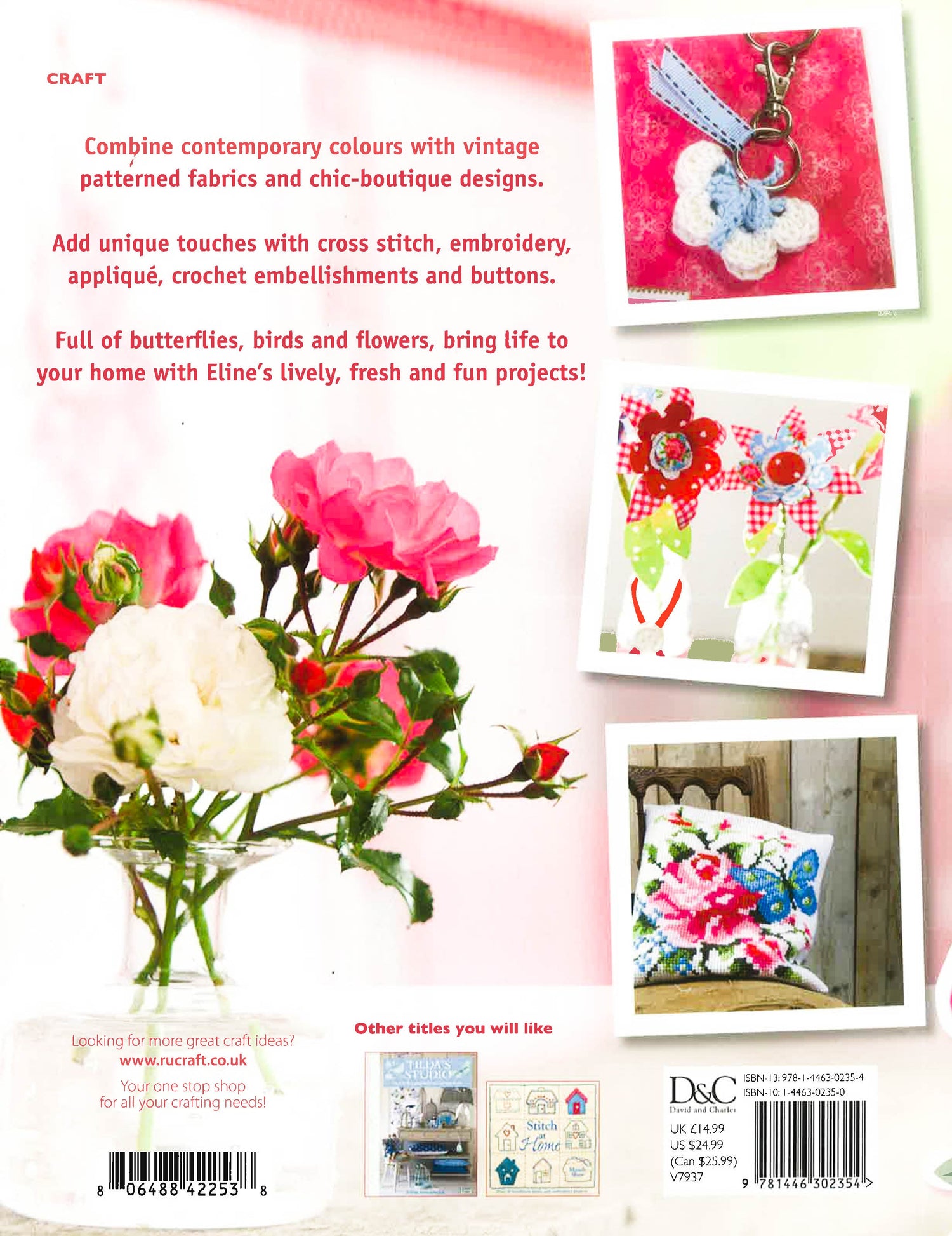 A gorgeous collection of over 45 lively, fresh and fun projects designed by Eline Pellinkhof. Combines contemporary colours with vintage patterned fabrics and chic-boutique designs. Features cross stitch, embroidery, applique, crochet embellishments and buttons. Bursting with butterflies, birds and flowers, this book is full of life. Beautiful colour photos accompany each project.