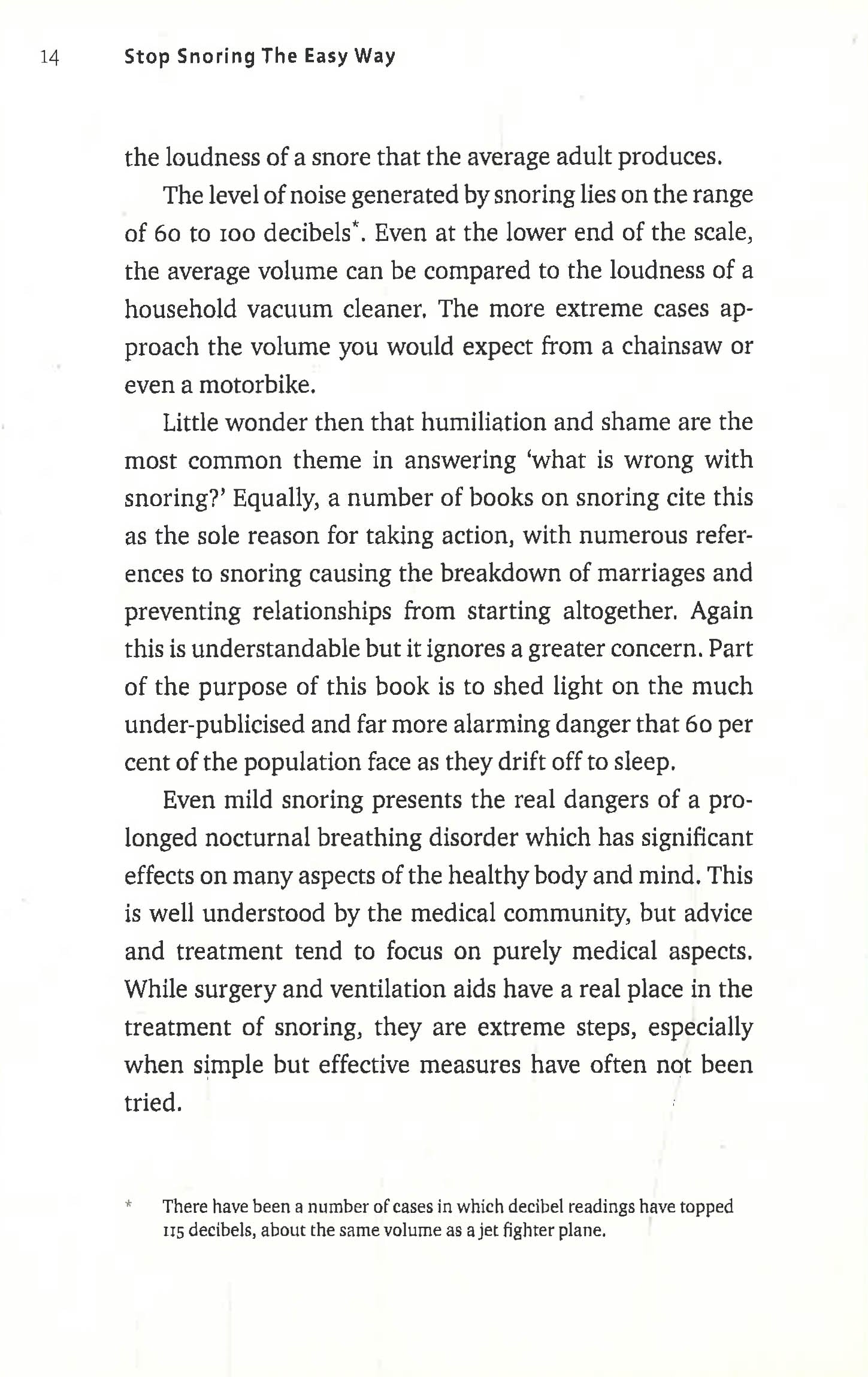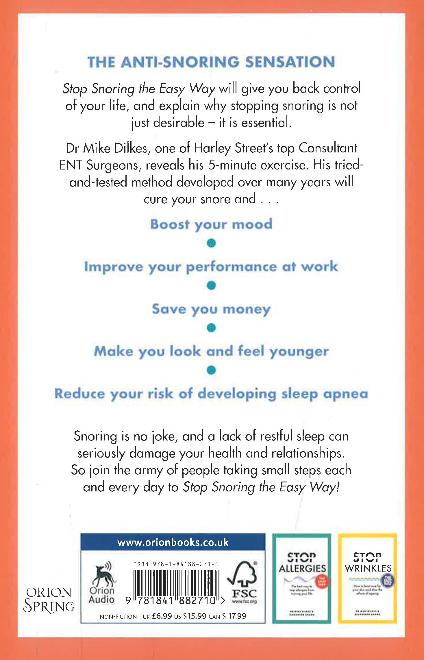 Stop Snoring the Easy Way & the Real Reasons You Need To will give you back control of your life, and explain why stopping snoring is not just desirable - it is essential. Dr Mike Dilkes has spent years developing this simple 5-minute exercise. His tried and tested method will cure your snore and...