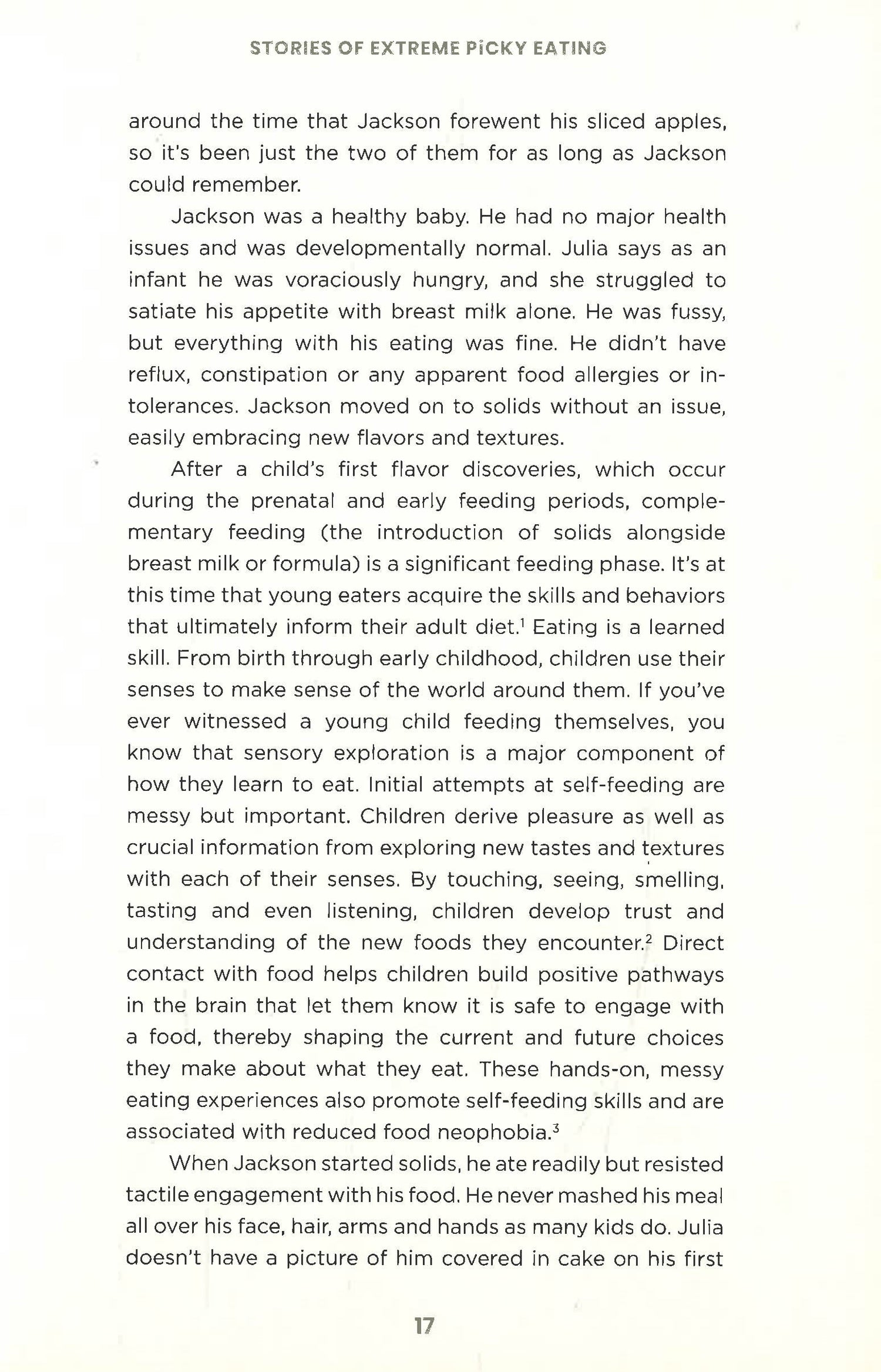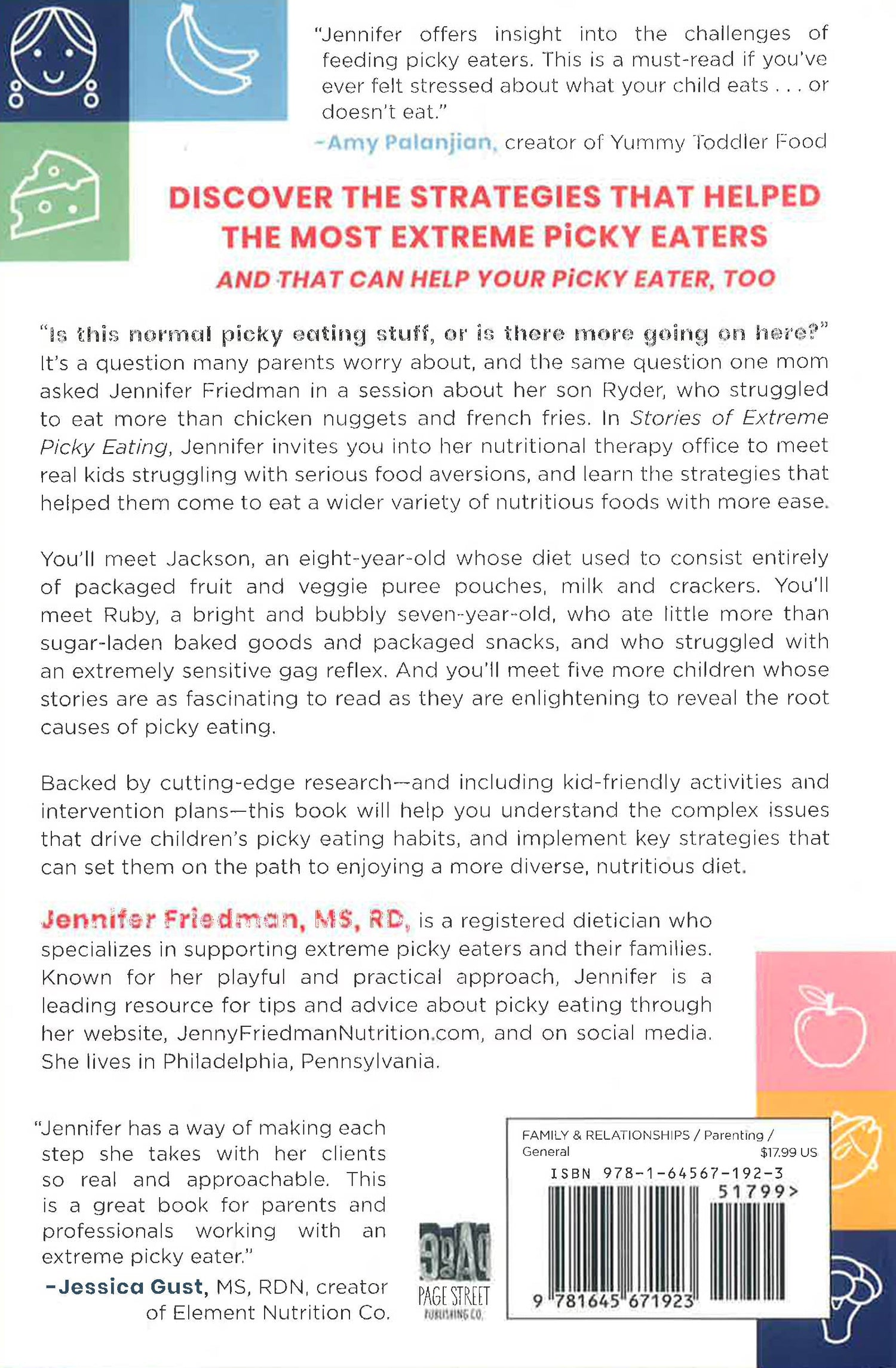 Parents raising food avoidant children, who are feeling defeated in their role as caregivers, will find foolproof advice in this book by studying real life examples, learning the psychological factors behind their child's behavior and discovering practical activities they can do at home with their kids. Jenny Friedman is a registered dietician and therapist whose clinical practice focuses on feeding therapy for children with Autism Spectrum Disorder (ASD), but she says many children who are not autistic struggle with the same sensitivities to food, and her advice is equally, if not more, effective with them. Jenny covers a wide range of experiences for parents dealing with any level of picky eating to connect to and benefit from, some of which involve common scenarios and others more rare but incredibly relevant. For instance, one child refuses to use any utensils and must be spoon-fed by his parents, another refuses to eat anything except store-bought pouch purees, and another who has a meltdown at the mere sight of an unfamiliar food. With Jenny's developed methods based on years of clinical trial and error in this specific field, presented through personal narratives that are as entertaining to read as they are insightful and activities readers that can implement immediately, this powerful guide will help many lost, frustrated parents transform their child from a picky eater to a healthy, adventurous eater.