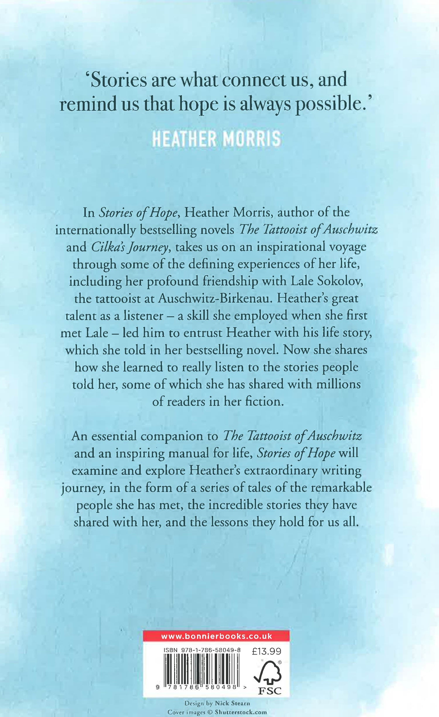 The Tattooist of Auschwitz is one of the bestselling books of the 21st Century. Now, in this essential companion, Heather Morris presents an inspiring manual for life, with a series of tales of the remarkable people she has met, the incredible stories they have shared with her, and the lessons they hold for us all. In Stories of Hope, Heather will explore her extraordinary talents as a listener - a skill she employed when she first met Lale Sokolov, the tattooist at Auschwitz-Birkenau and the inspiration for her bestselling novel. It was this ability that led Lale to entrust Heather with his story, which she told in her novel The Tattooist of Auschwitz and the bestselling follow up, Cilka's Journey. Now Heather shares the story behind her inspirational writing journey and the defining experiences of her life, including her profound friendship with Lale, and explores how she learned to really listen to the stories people told her - skills she believes we can all learn. 'Stories are what connect us and remind us that hope is always possible.' Heather Morris Includes an exciting sneak peek extract from the upcoming fiction title from Heather Morris. An international phenomenon, The Tattooist of Auschwitz has sold over five million copies. Cilka's Journey has sold over a million copies worldwide.