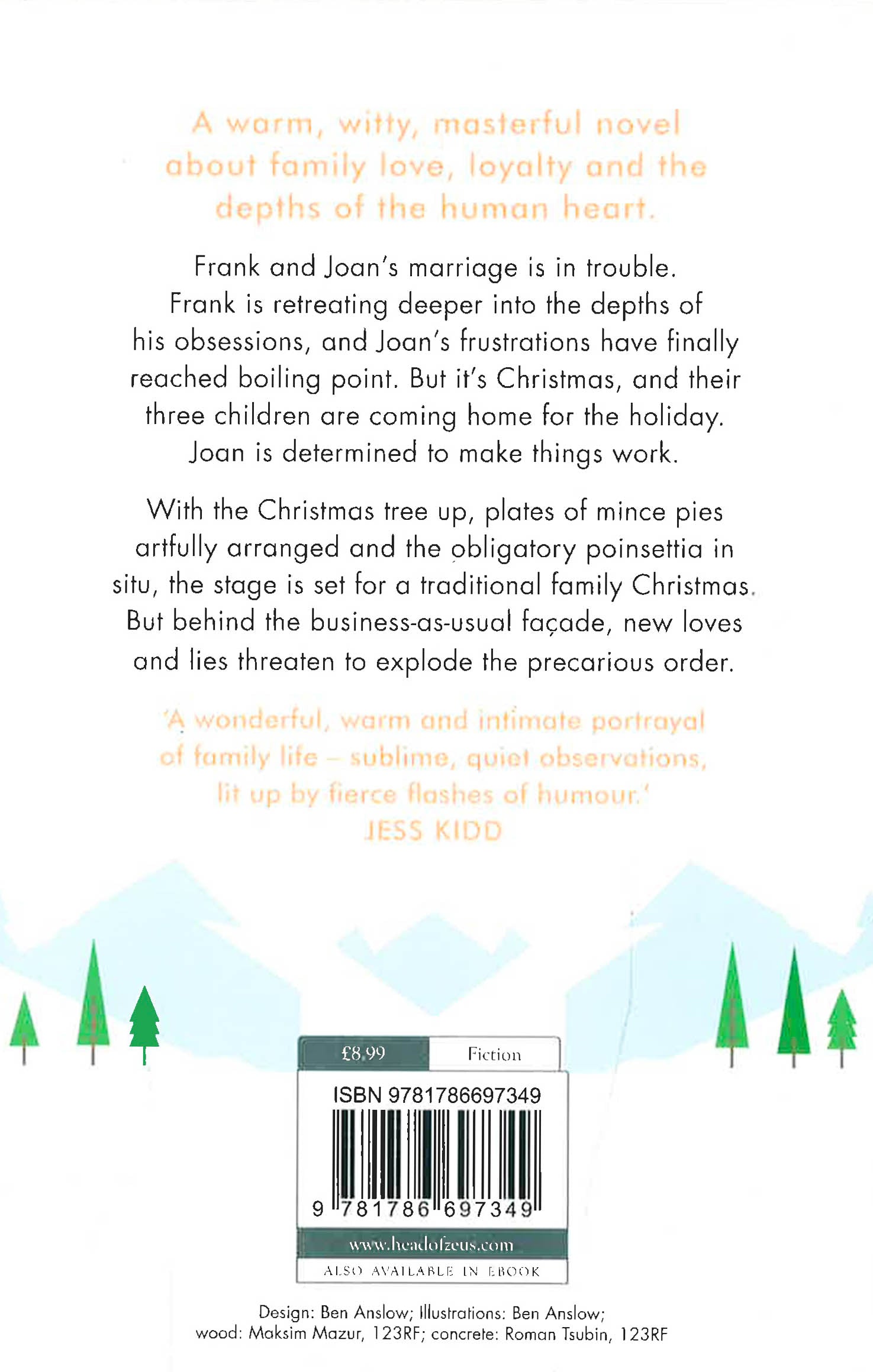 Frank and Joan's marriage is in trouble. Having spent thirty years failing to understand each other, Joan's frustrations have finally reached boiling point. But it's Christmas, and their three children are coming home for the holiday. So Joan determines to make things work. With the Christmas tree up, plates of mince pies artfully arranged and the obligatory poinsettia in situ, the stage is set for a traditional family Christmas. If only this family were up to the challenge. Told with wit, understanding and disarming honesty, this is a novel about the thorniness of family love and its capacity to endure.